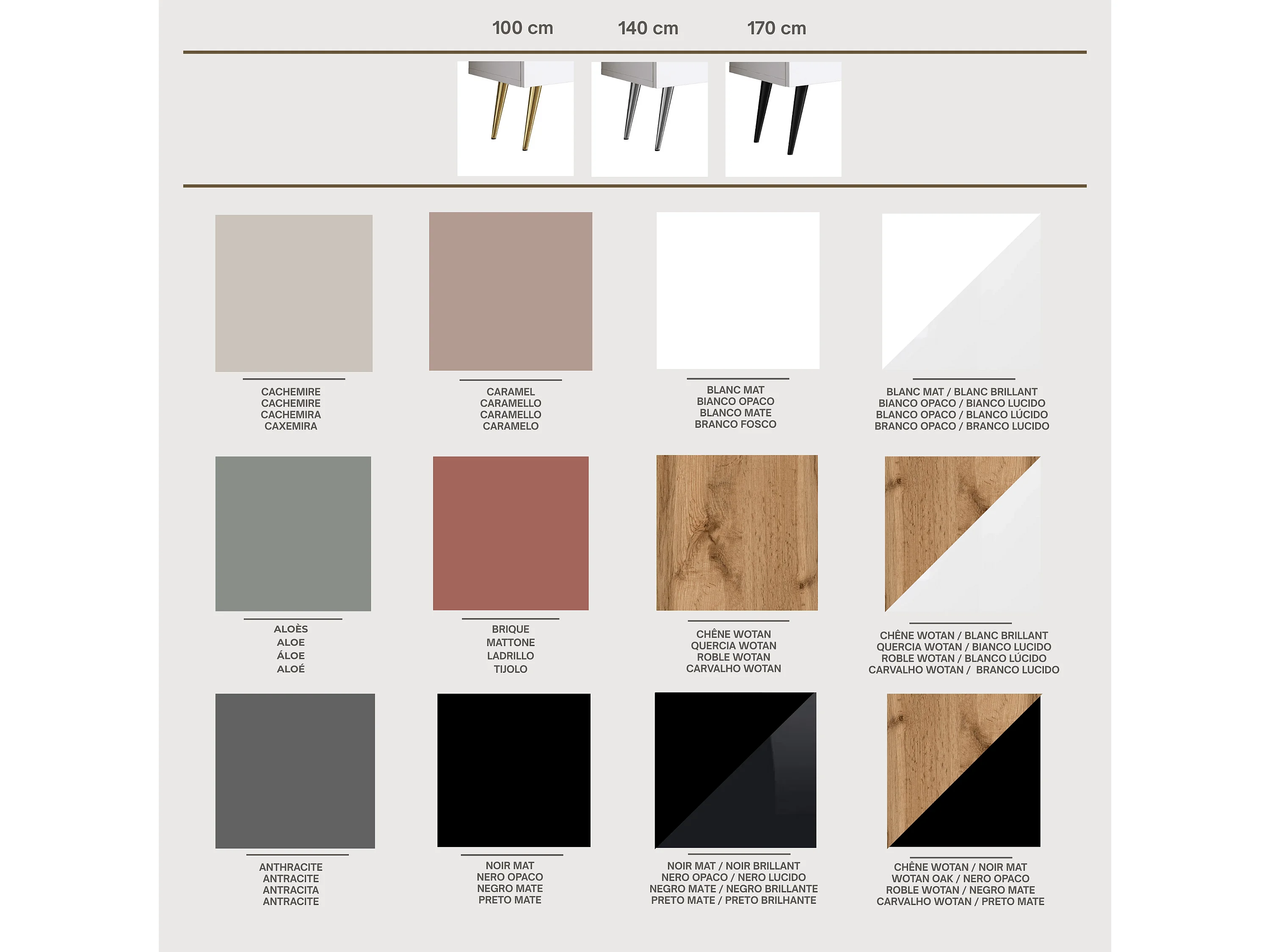 Meuble TV : Rouge Brique, 170 x 52 x 32 cm, pieds noires