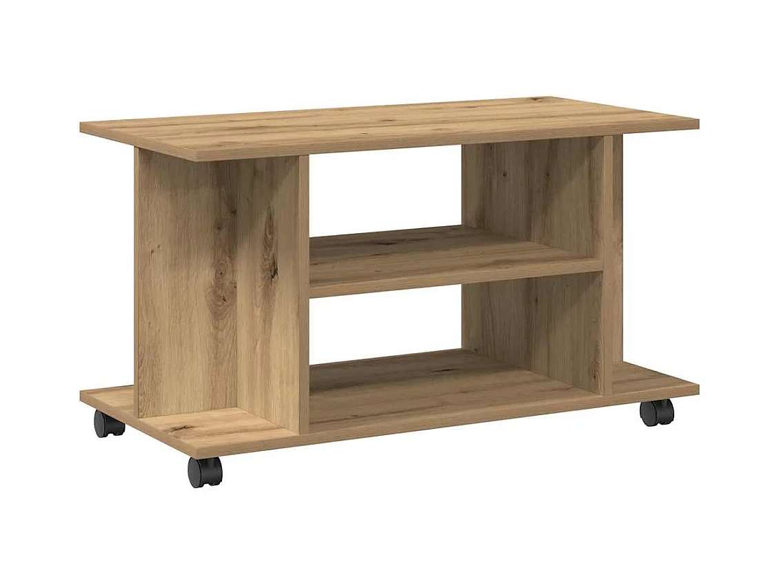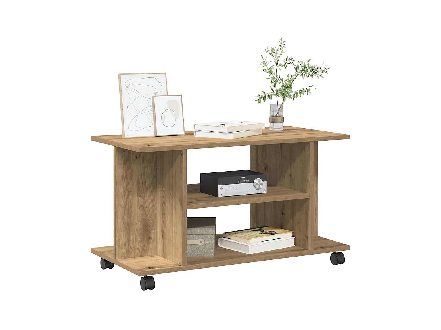 Meuble TV roulettes chêne artisanal 80x40x45 cm bois ingénierie
