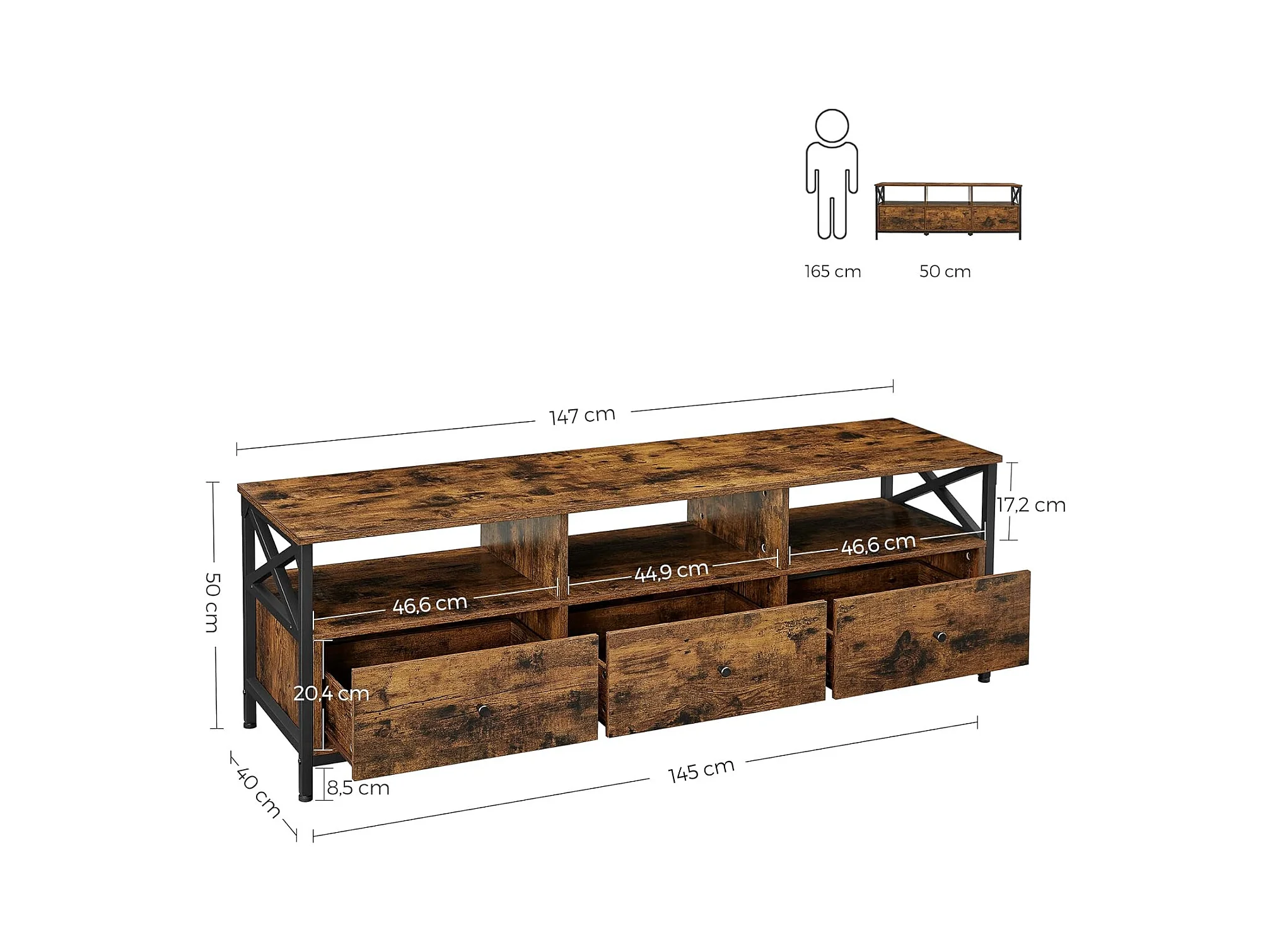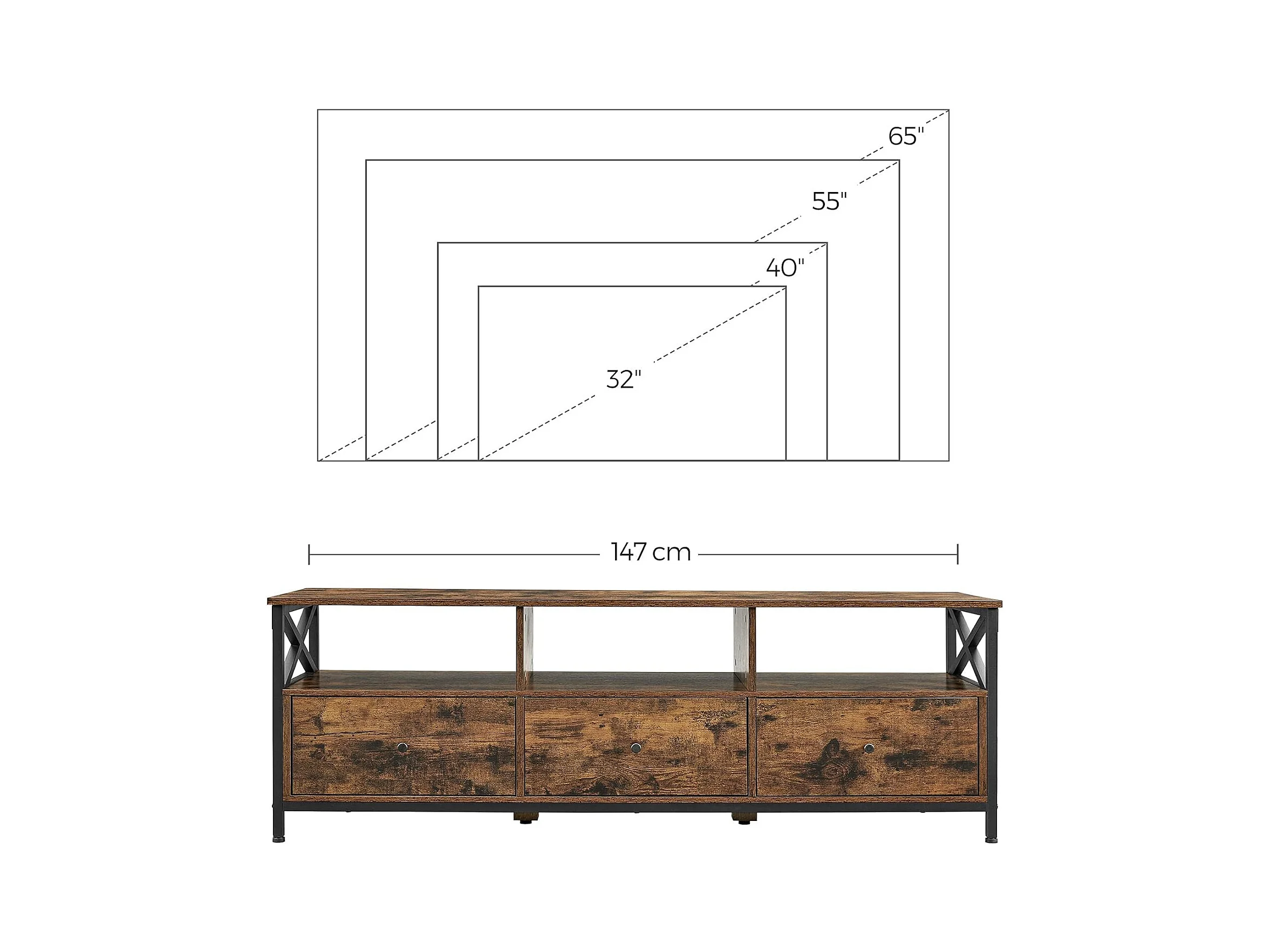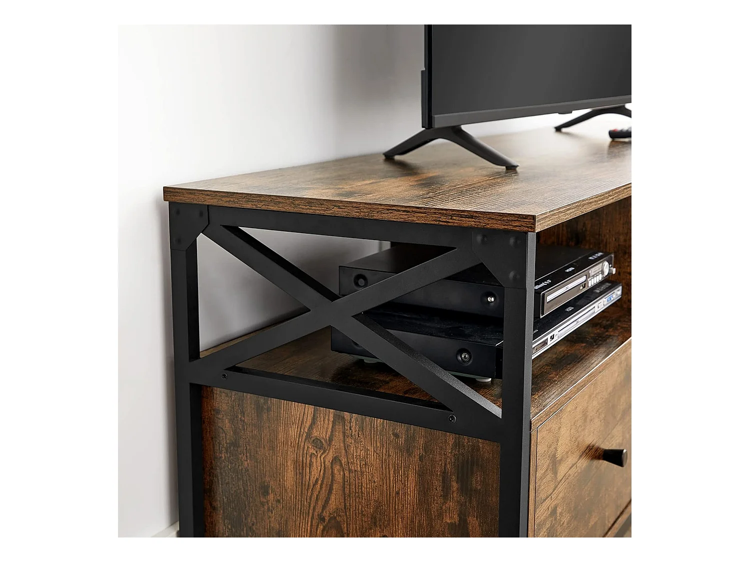 Meuble TV rustique marron avec tiroirs et étagères Valora