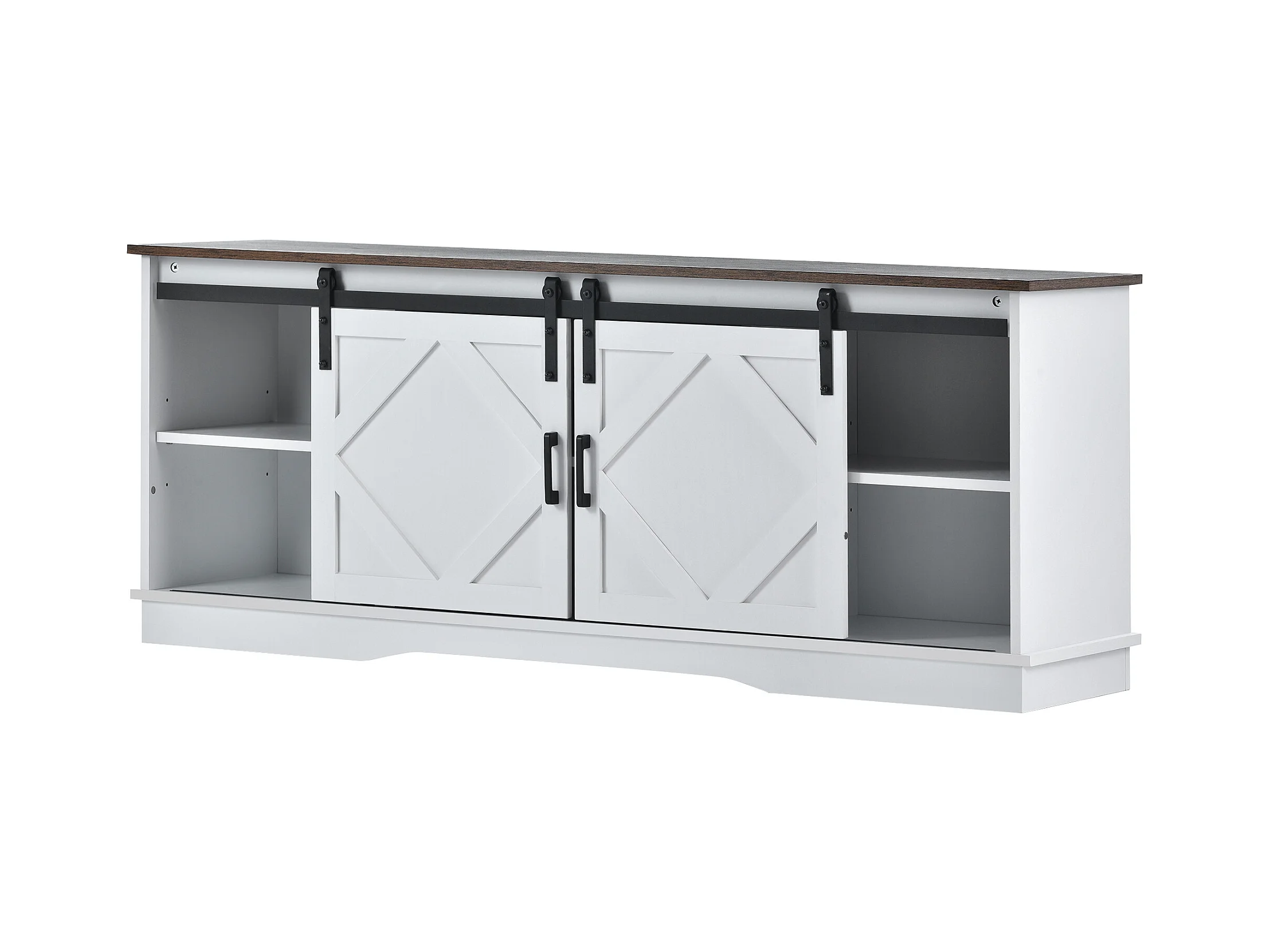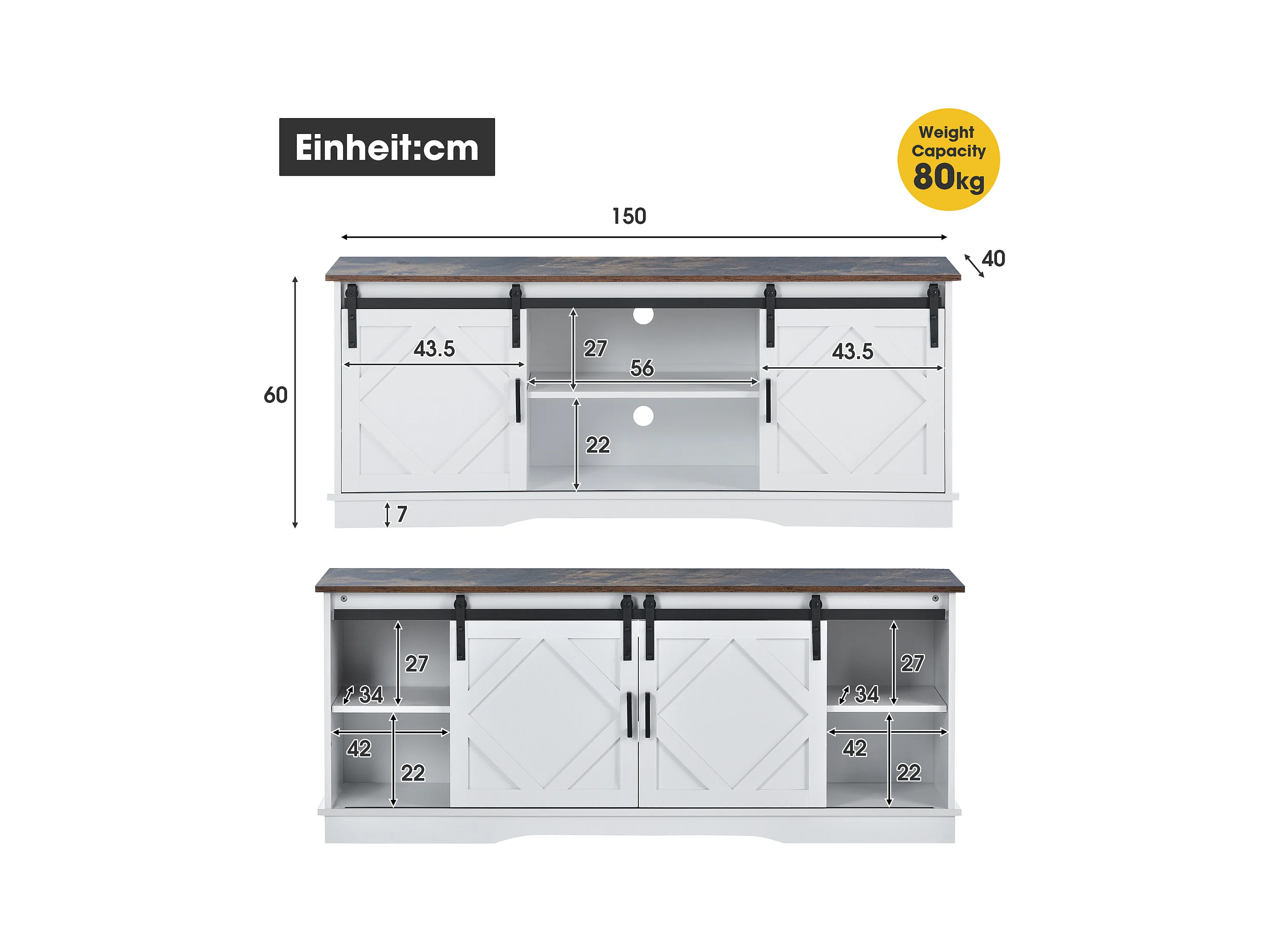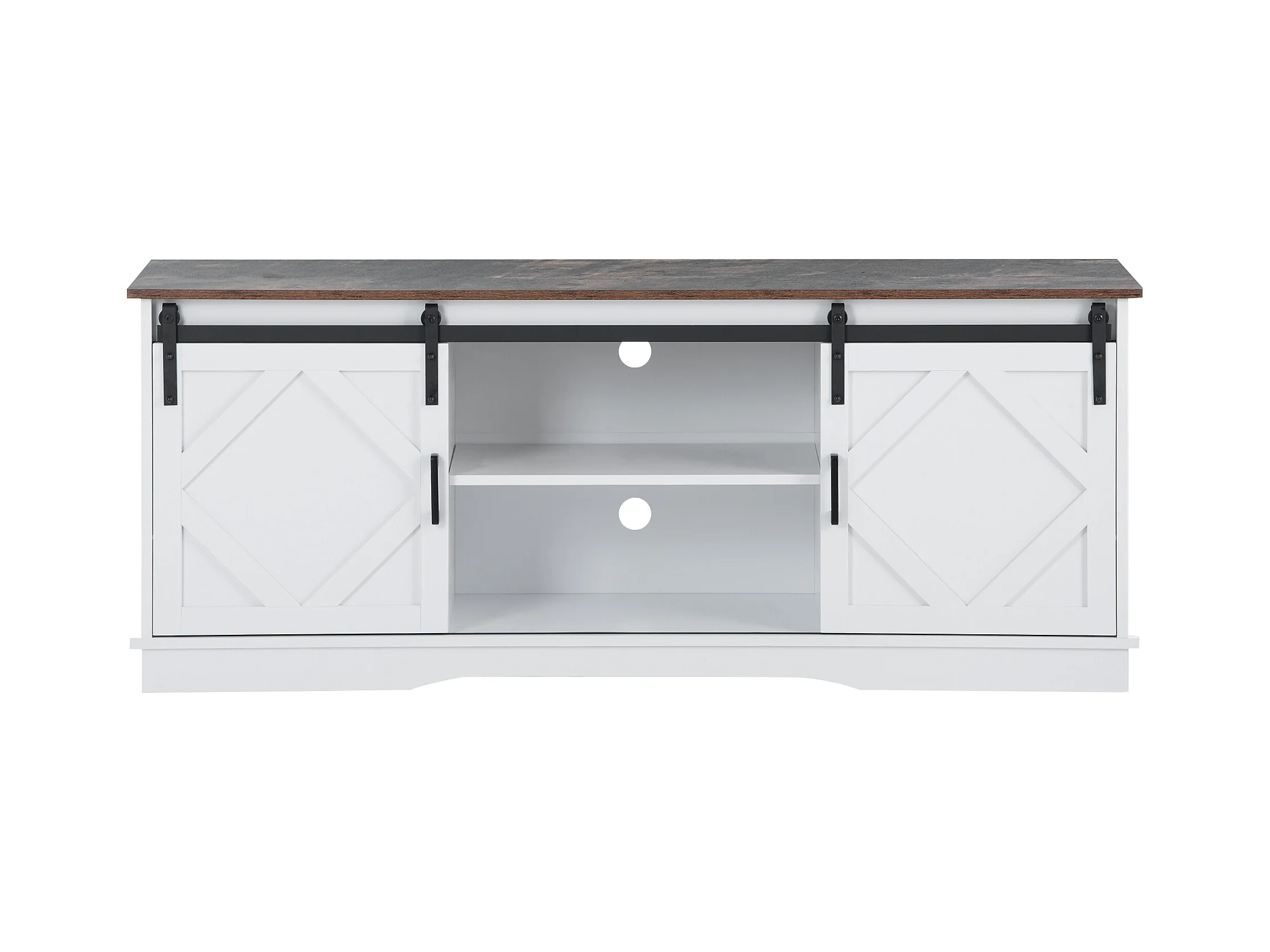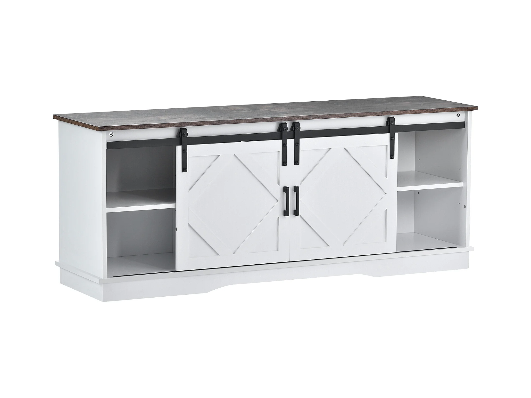 Meuble TV 150x40x60 cm salon 2 portes coulissantes et rangement ouvert en bois - étagères réglables - blanc