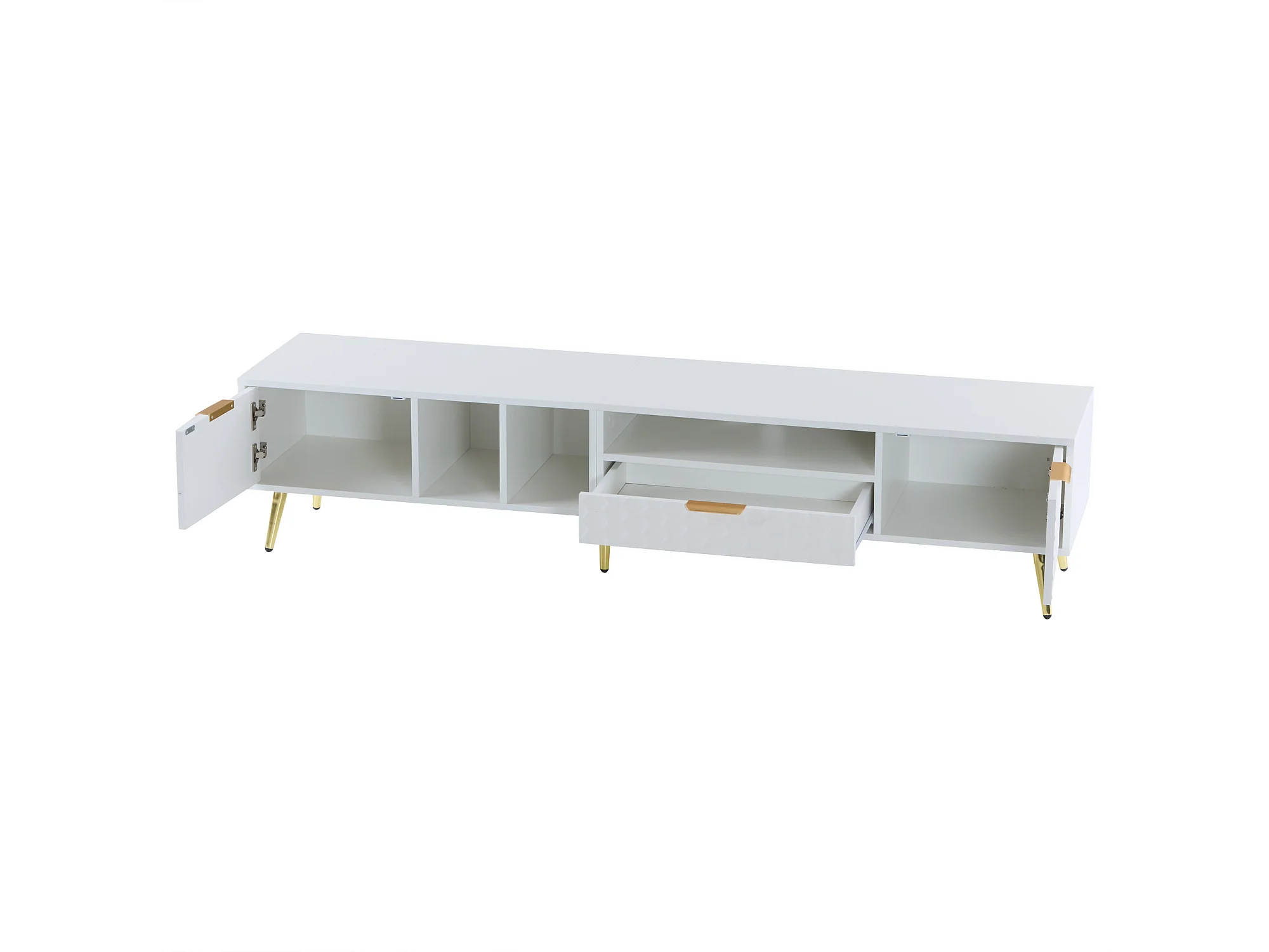Meuble TV 180x40x41 cm avec 2 portes 1 tiroir meuble de rangement en bois - poignées en métal - blanc