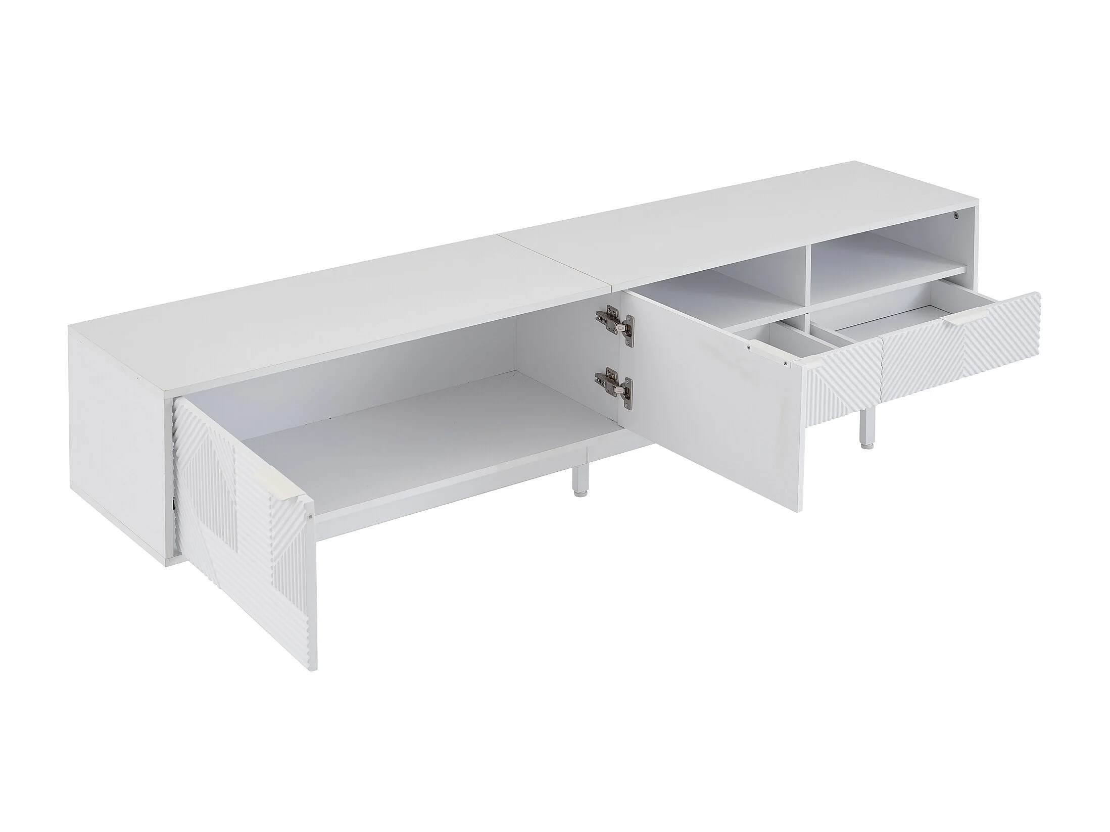 Meuble TV 200x40x51 cm avec 2 portes 2 tiroirs meuble de rangement en bois - blanc