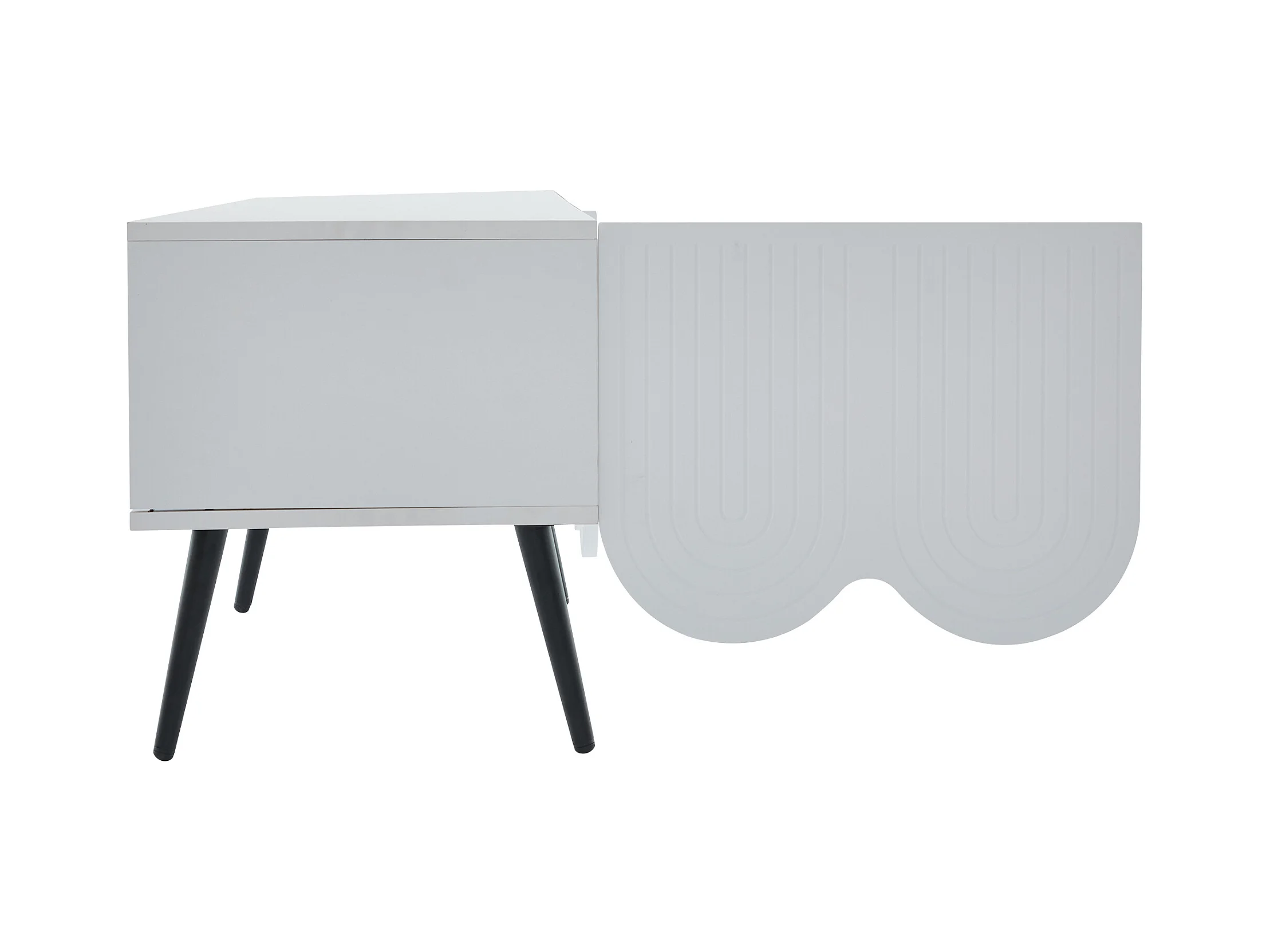 Meuble TV 180x40x45 cm avec 4 portes ondulées meuble de rangement en bois - blanc