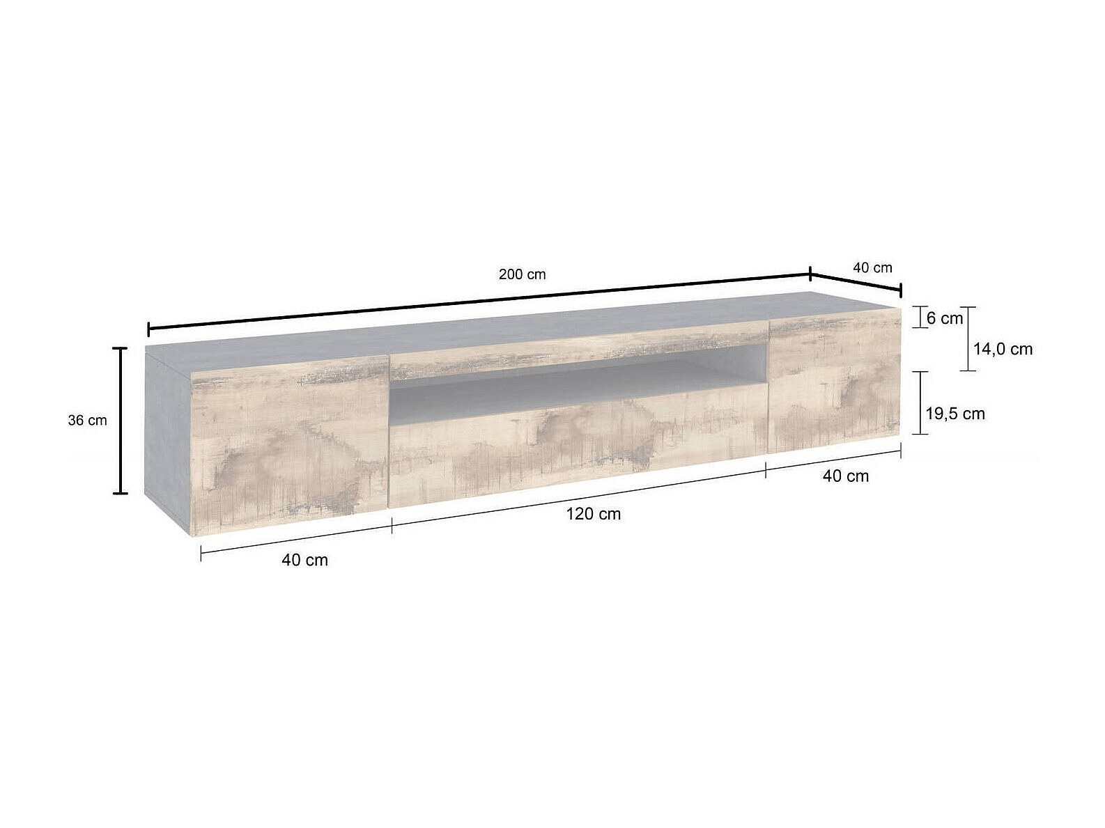 Meuble TV Jesse, Buffet bas de salon avec 3 portes, Base pour meuble TV, 100% Made in Italy, 200x40h37 cm, Ciment