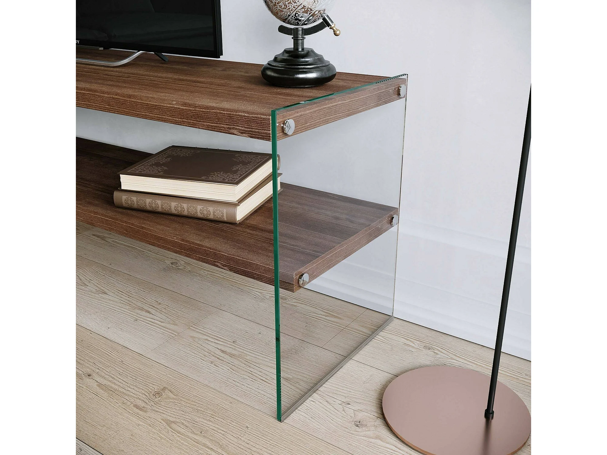 Meuble TV Sargas, Buffet de salon, Armoire basse pour TV, Base murale de rangement, 120x35h45 cm, Noyer Foncé