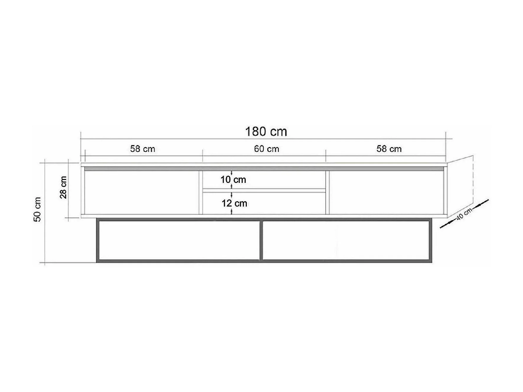 Meuble TV Selena, Buffet de salon, Armoire basse pour TV, Base murale de rangement, 180x40h50 cm, Noyer et Noir