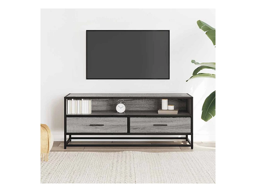 Meuble TV sonoma gris 100x34,5x40 cm bois d'ingénierie et métal