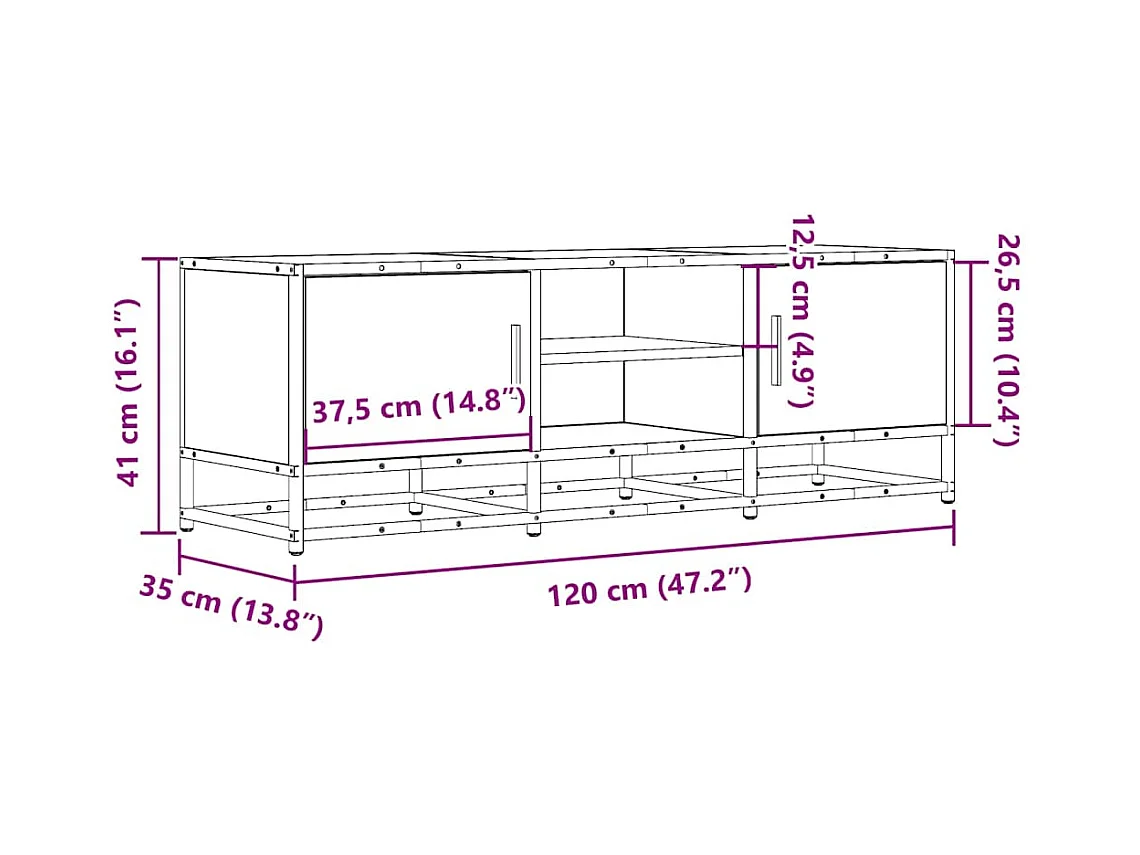 Meuble TV sonoma gris 120x35x41 cm bois d'ingénierie et métal