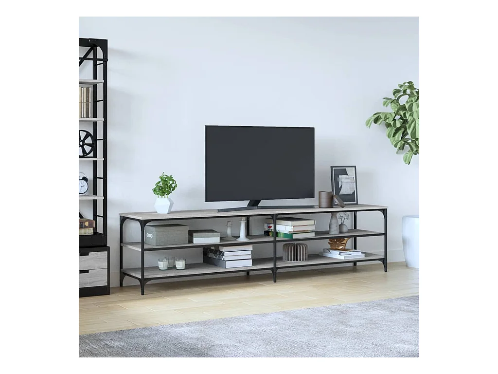 Meuble TV sonoma gris 200x30x50 cm bois d'ingénierie et métal