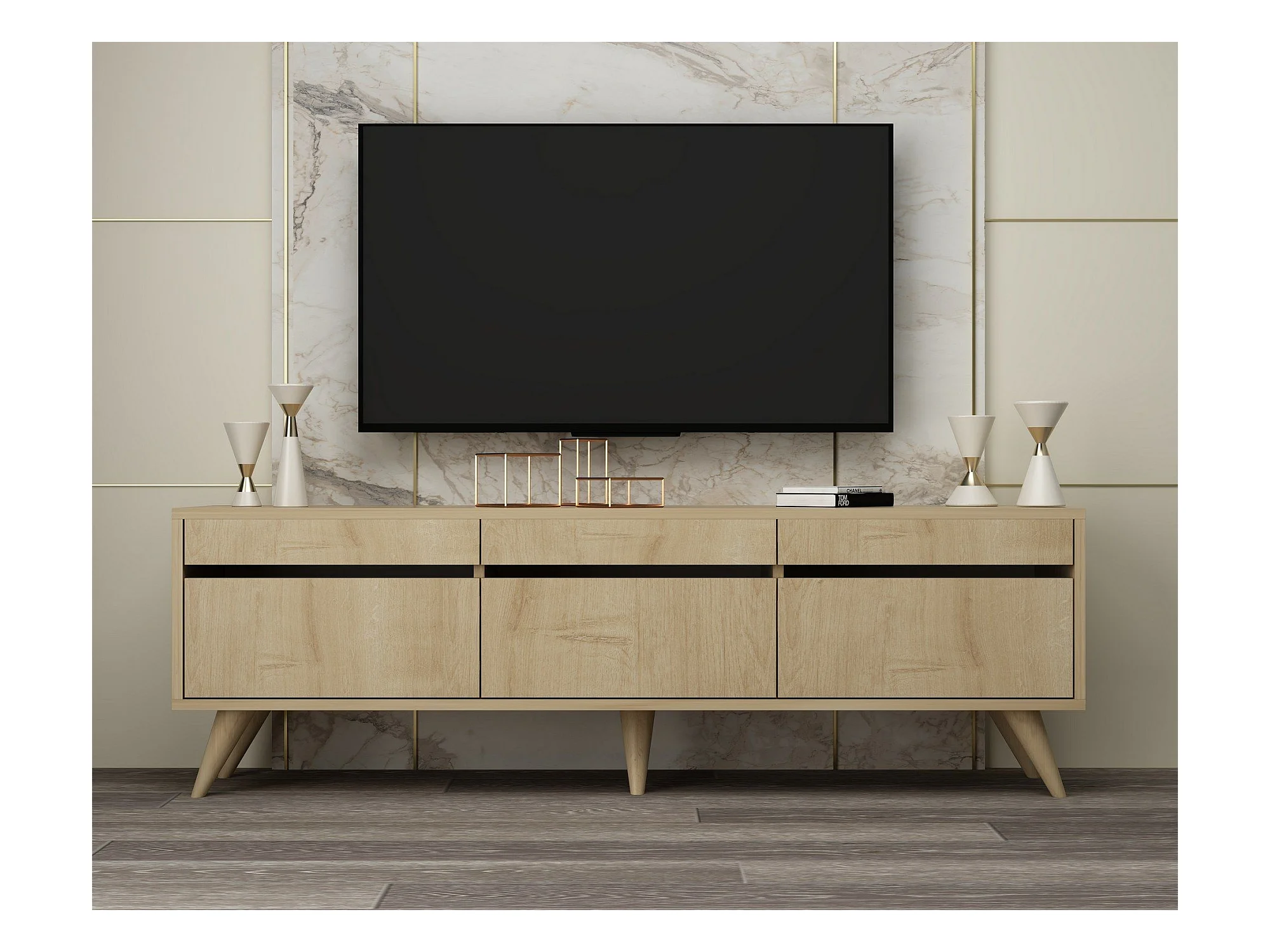 Meuble TV style scandinave Algol 150cm Chêne clair