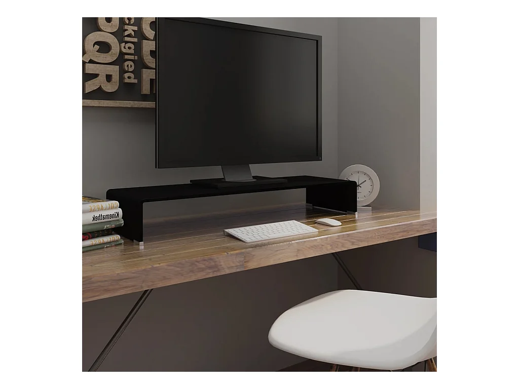 Meuble TV/support pour moniteur 90x30x13 cm verre noir