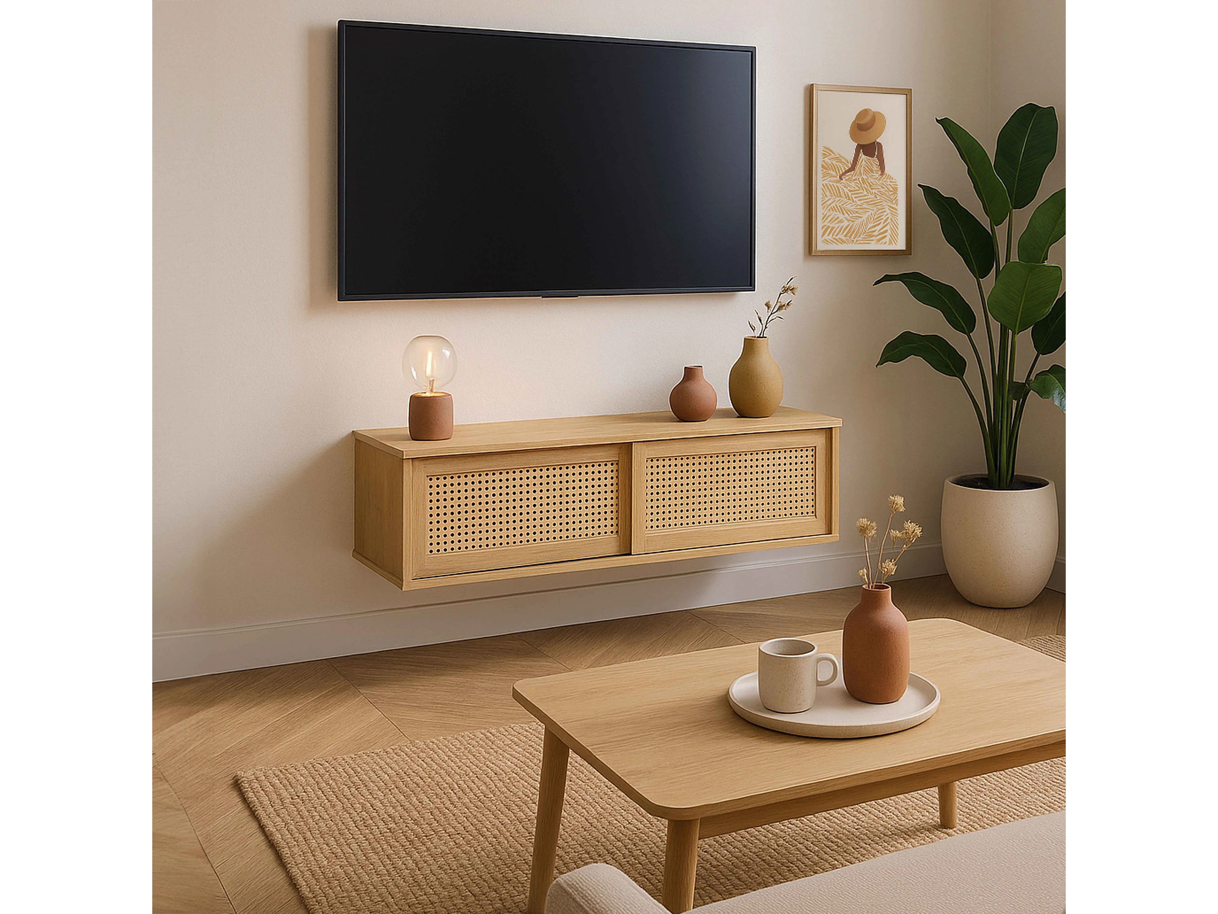 Nexa - Meuble TV suspendu 4 portes en bois L180cm - Beige
