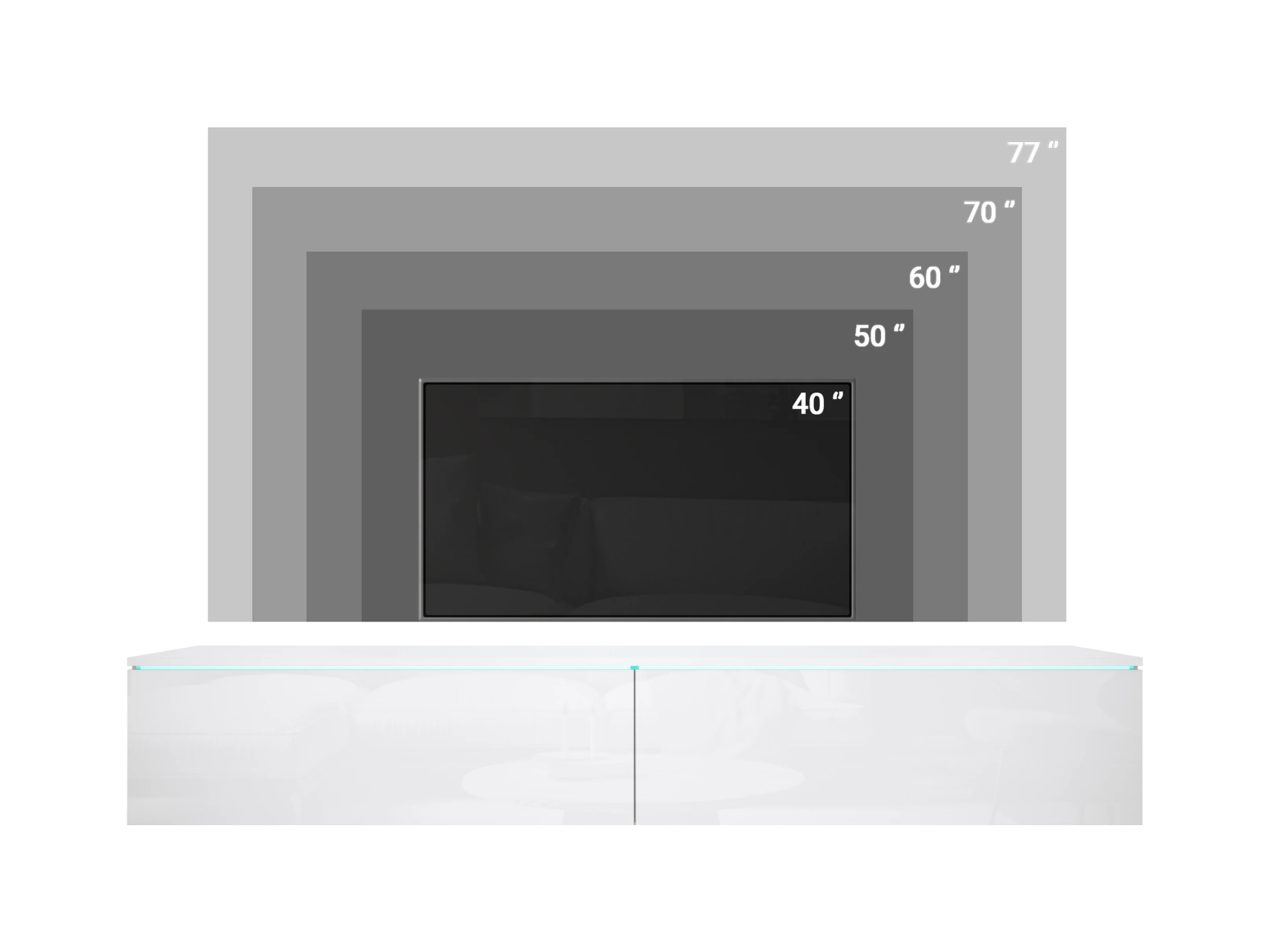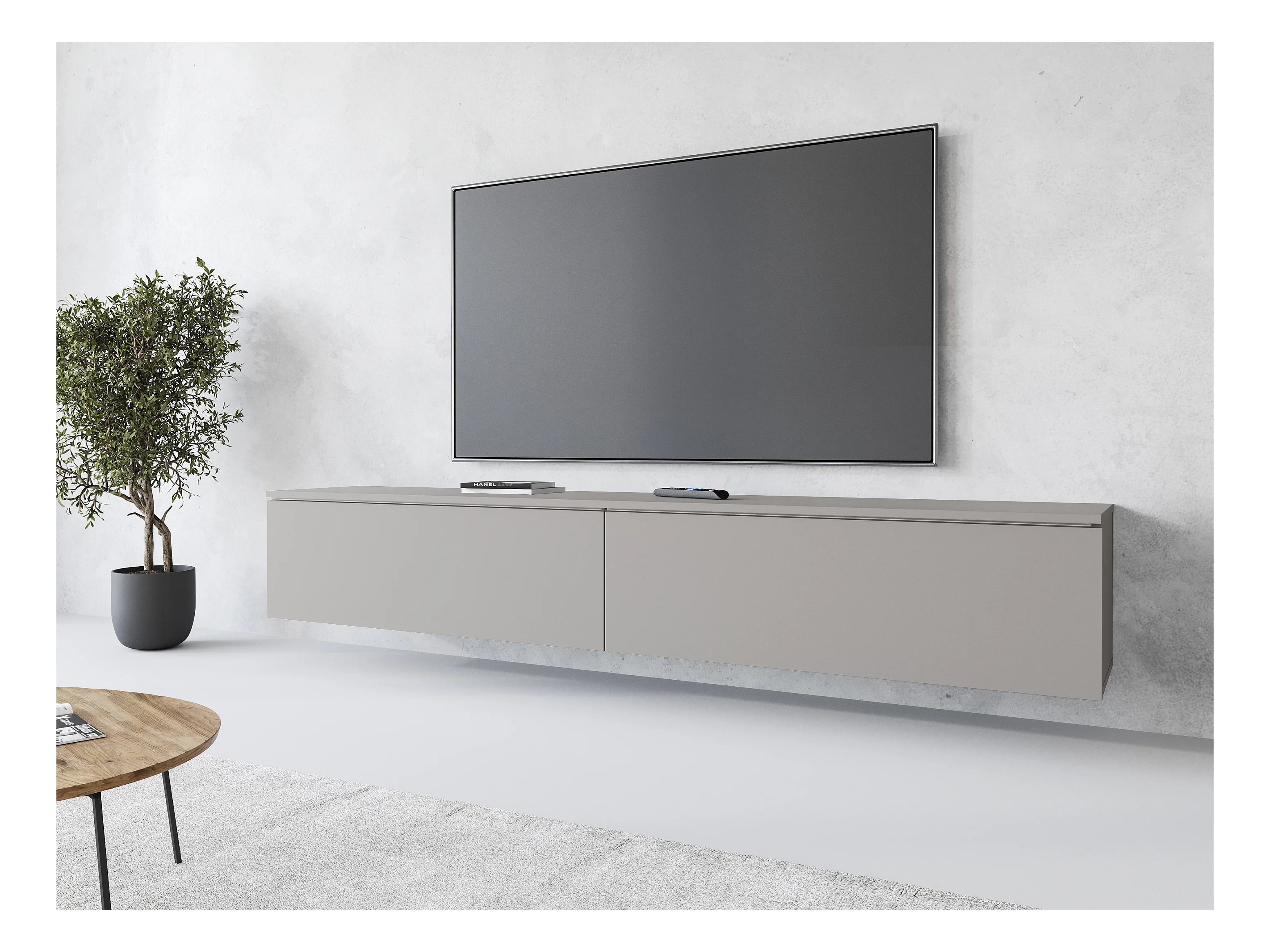 Meuble TV moderne 180 cm pour salon – 2 portes, sans poignées, finition mate, à poser ou à suspendre, gris palladium