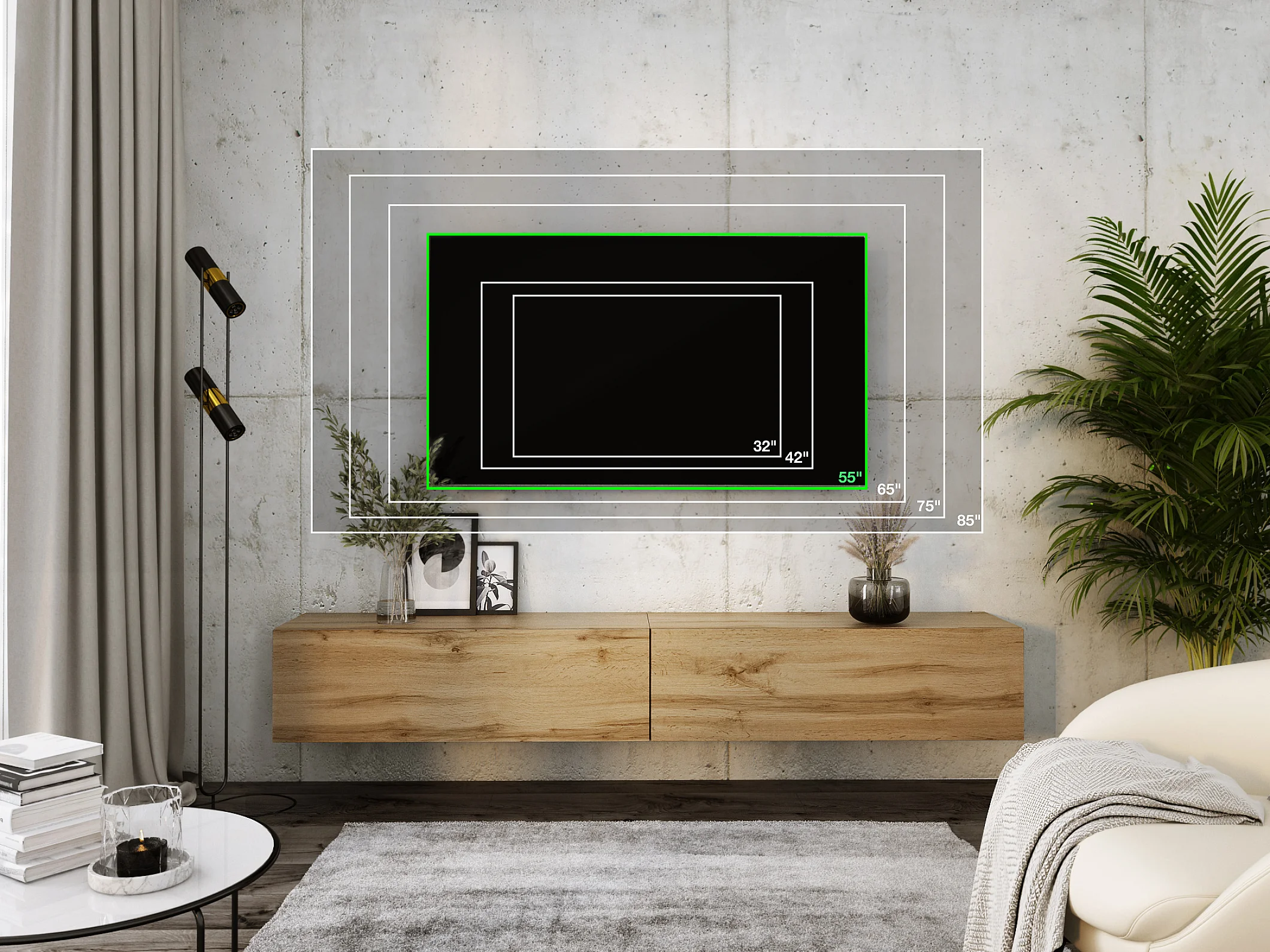 Meuble TV Suspendu, (2 x 100) x 34 x 32 cm, Chêne Wotan