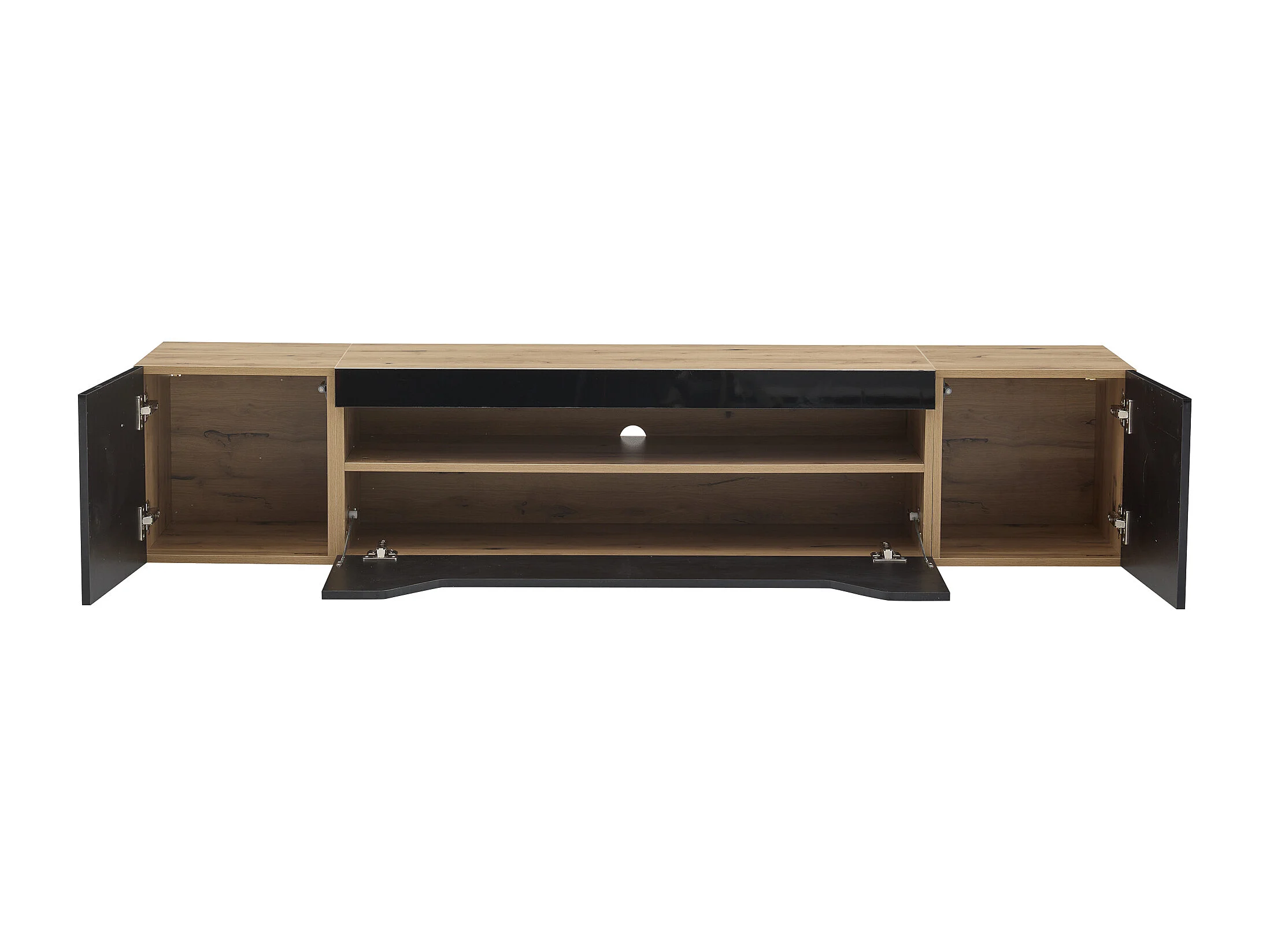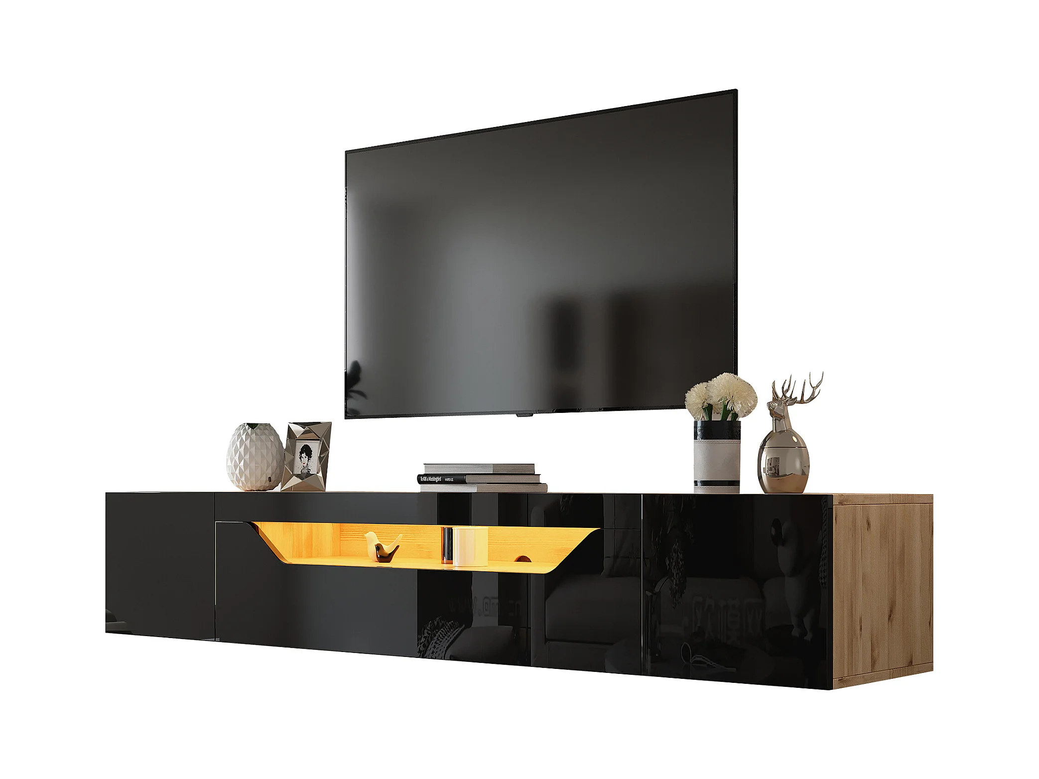 Meuble TV suspendu 3 portes avec éclairage LED - Meuble TV noir - portes pliantes - pour TV 75"