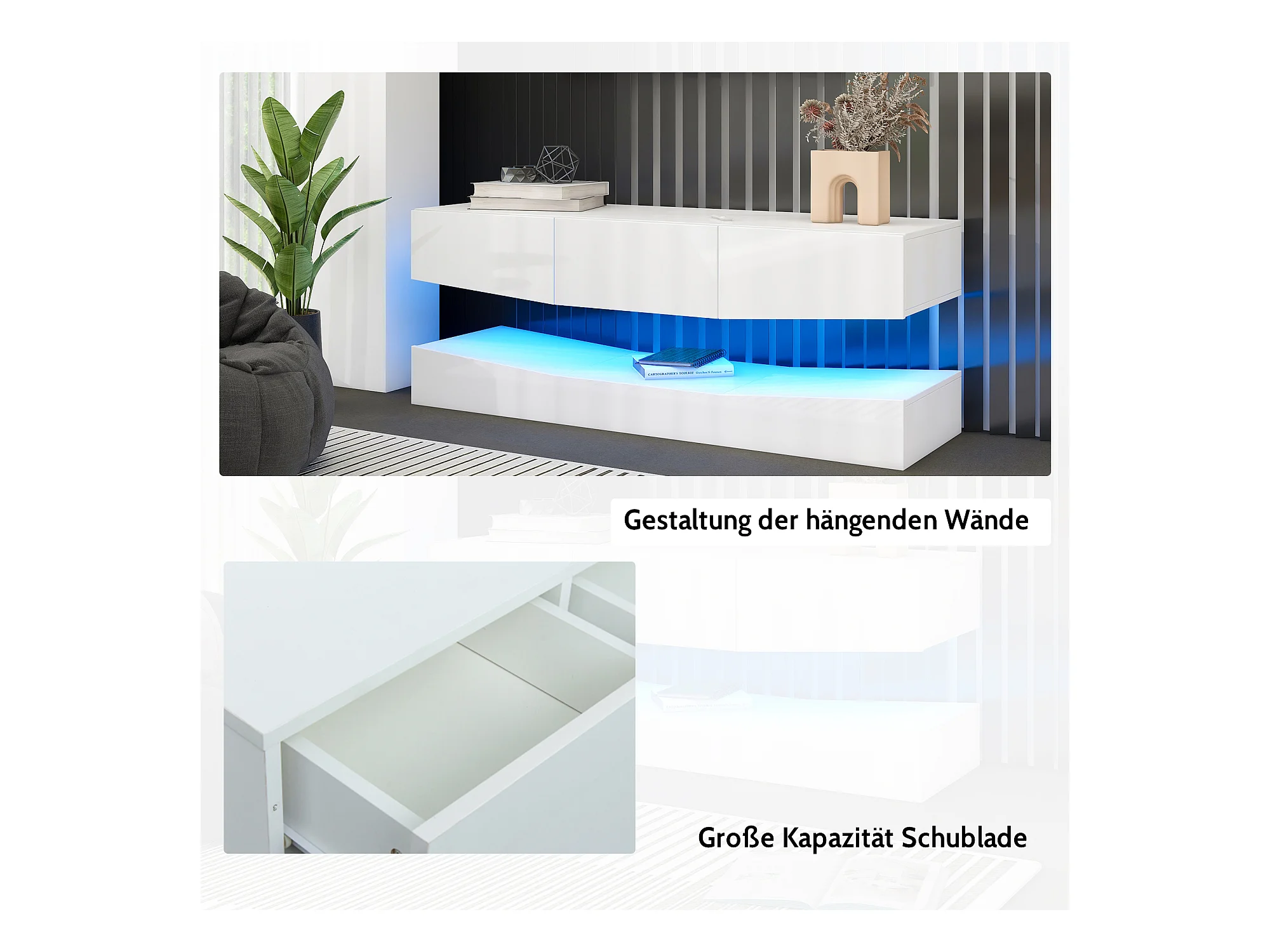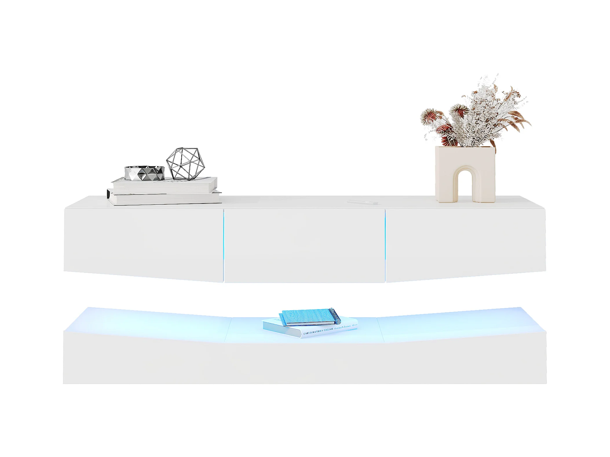 Meuble TV suspendu - laqué brillant - LEDs - panneaux de particules - blanc