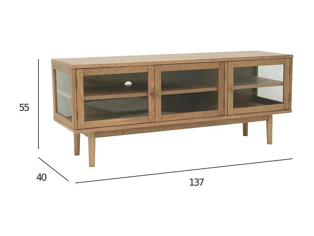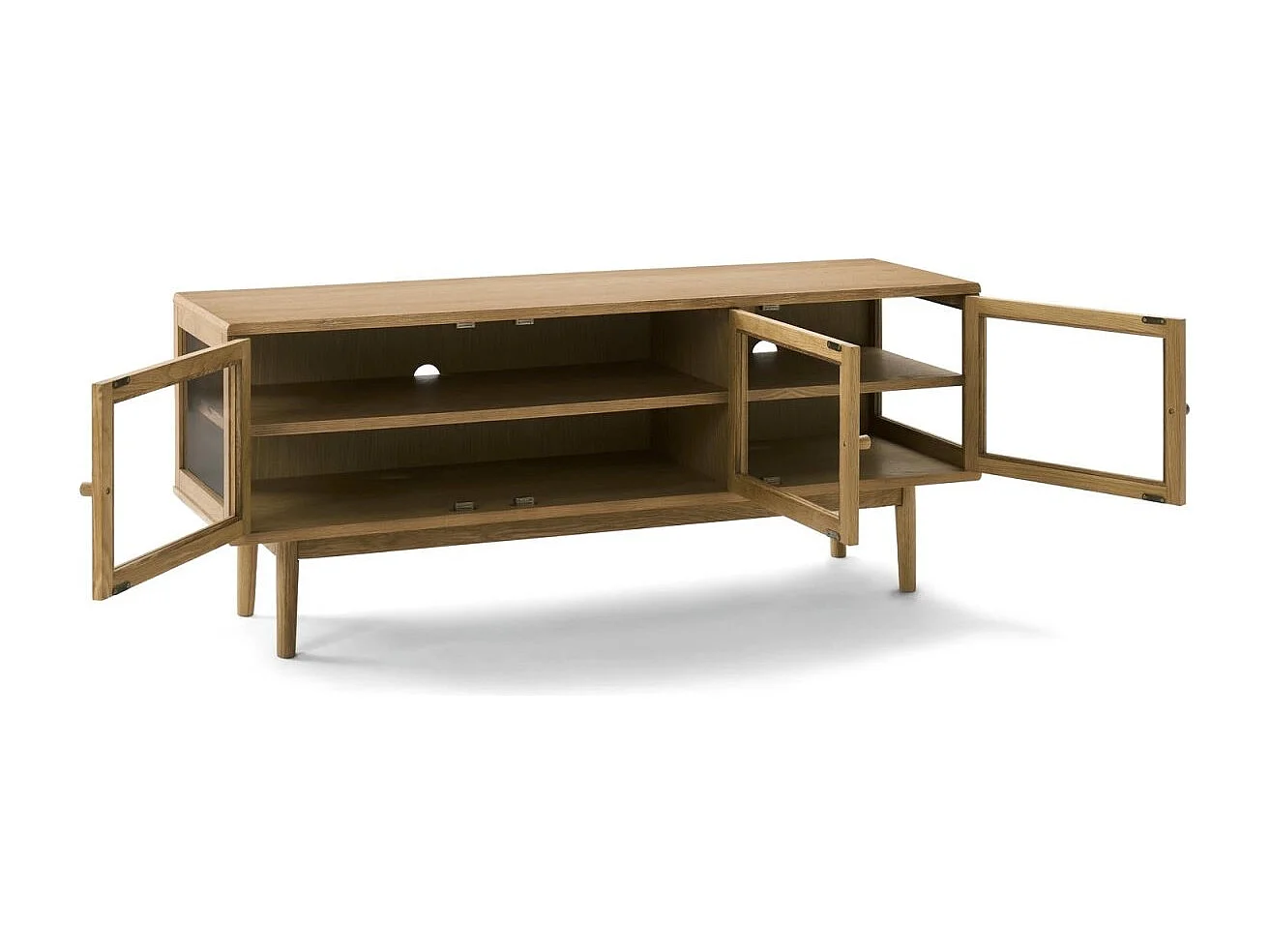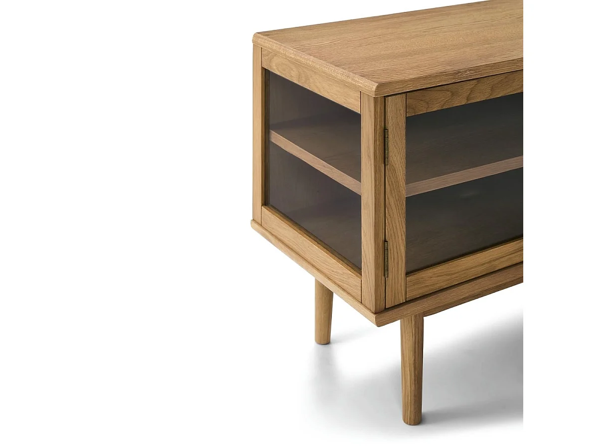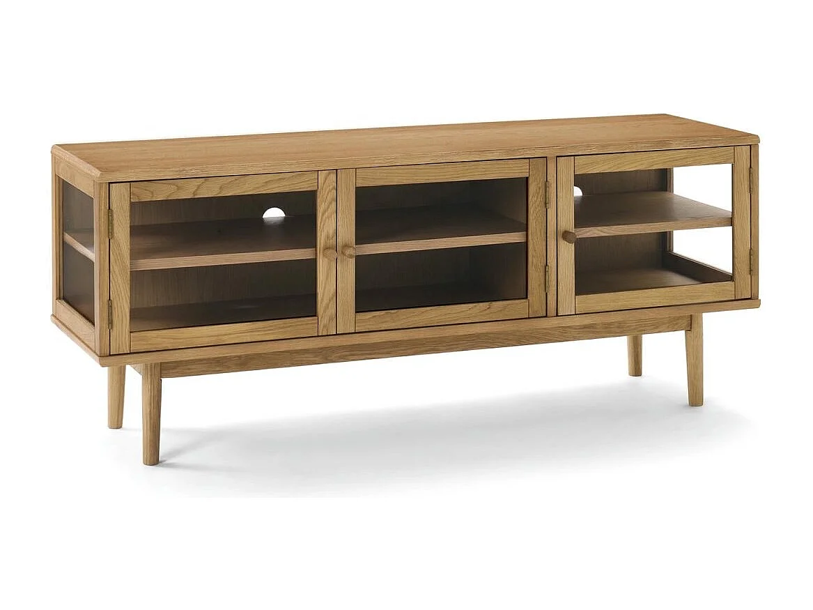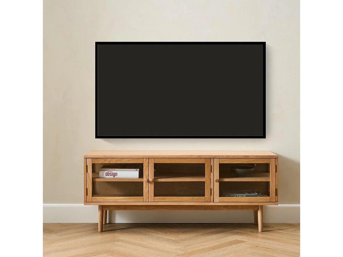 Meuble TV Svendborg - 3 portes - Chêne massif et verre - naturelle
