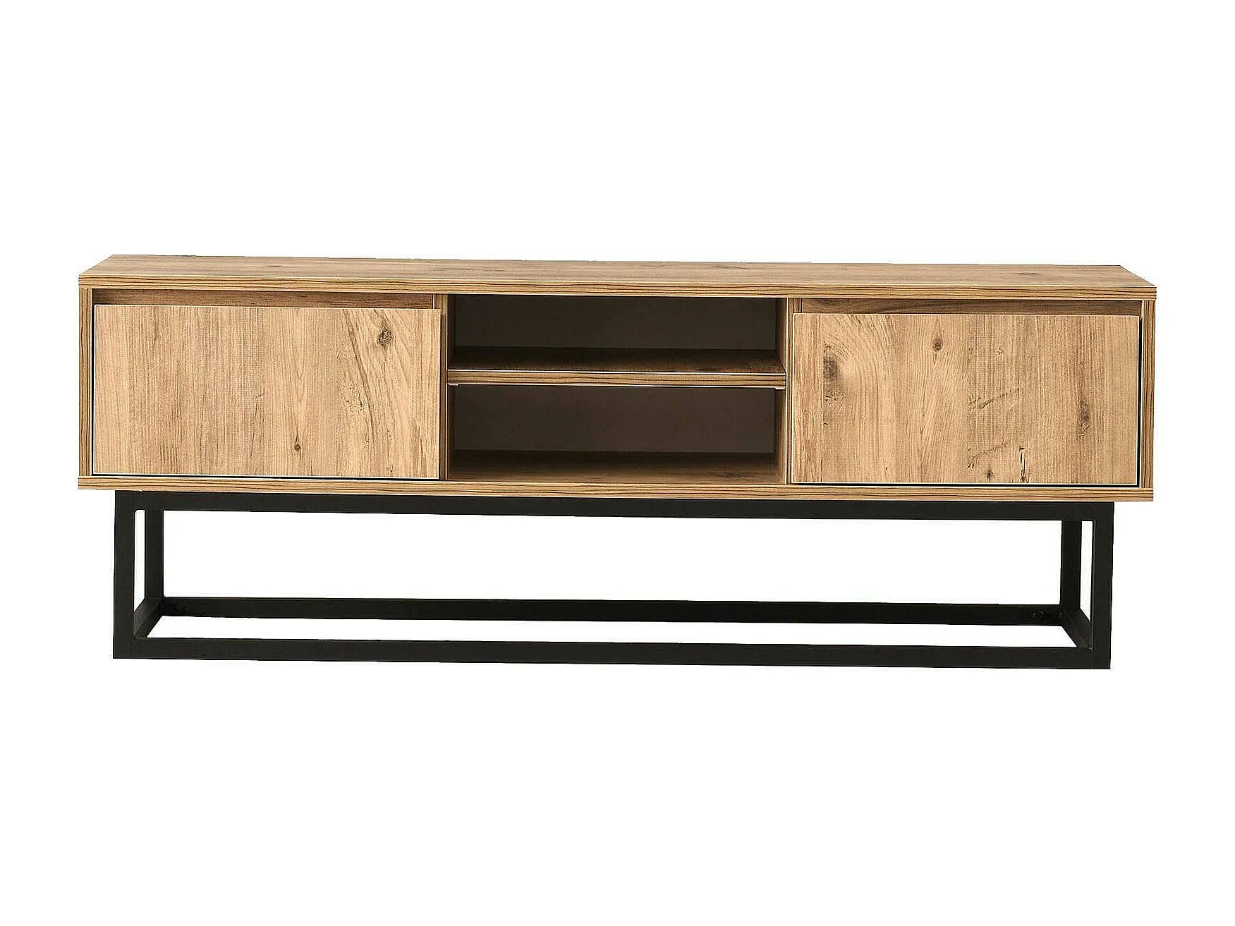 Meuble TV Themis, Buffet de salon, Armoire basse pour TV, Base murale de rangement, 180x40h50 cm, Noir et Chêne