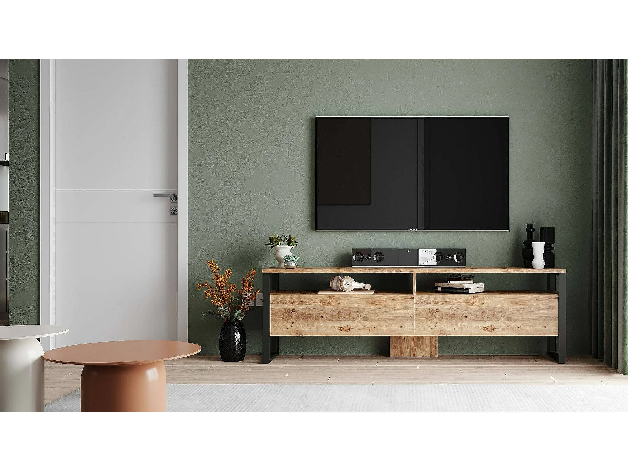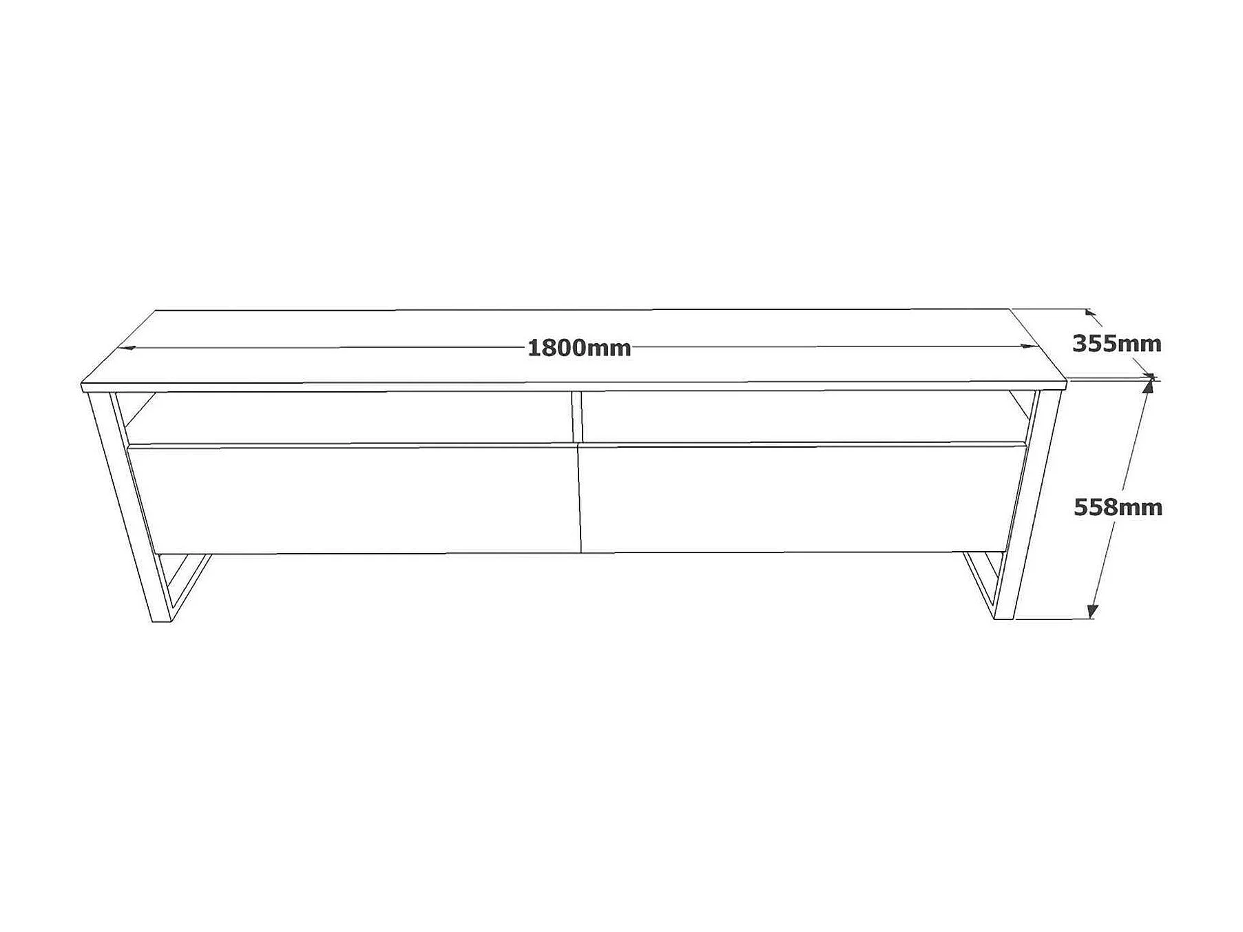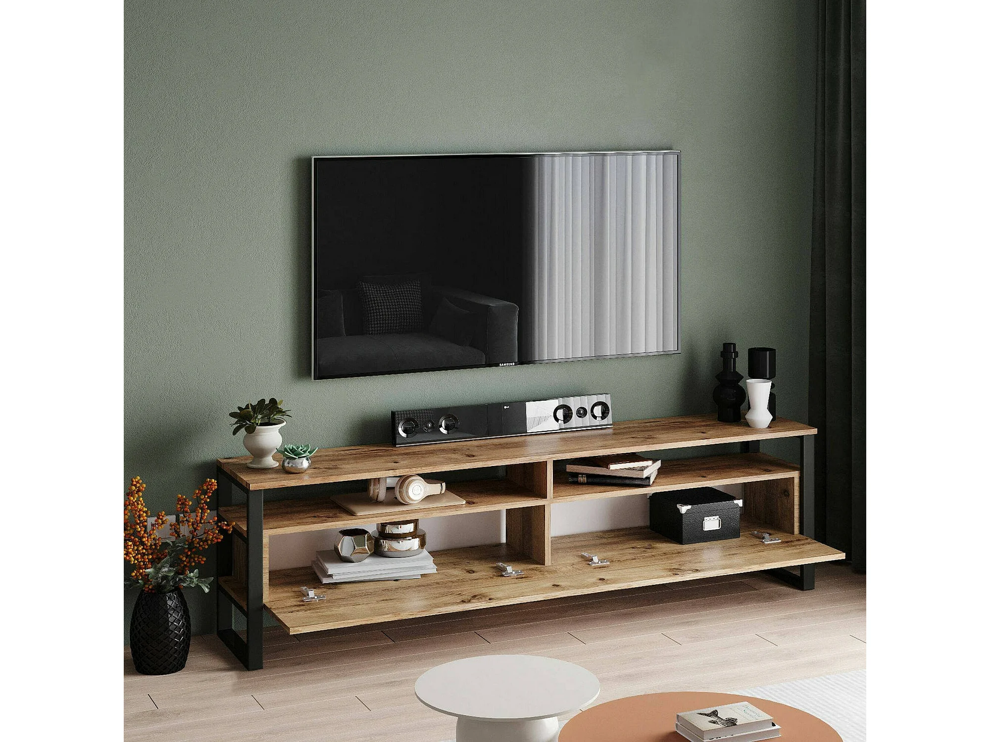 Meuble TV Thuban, Buffet de salon, Armoire basse pour TV, Base murale de rangement, 180x36h56 cm, Chêne