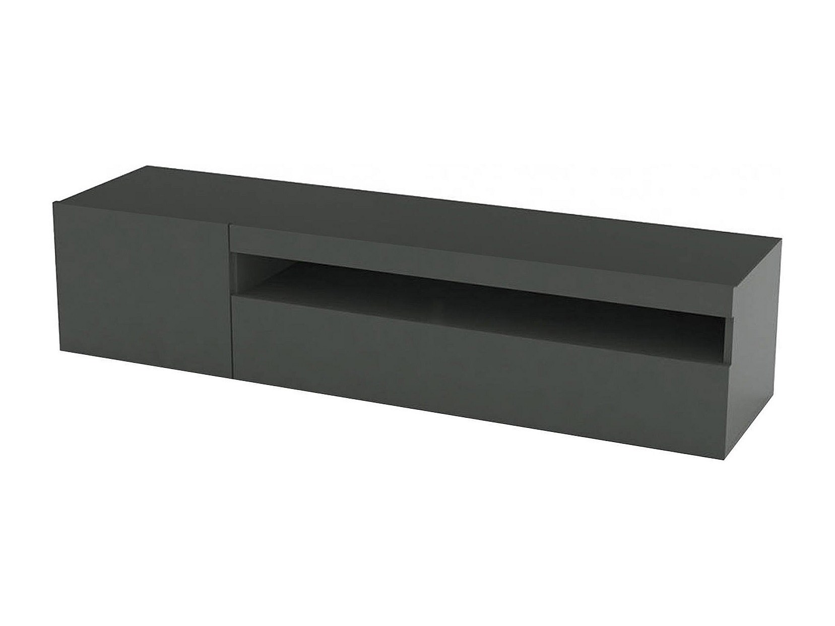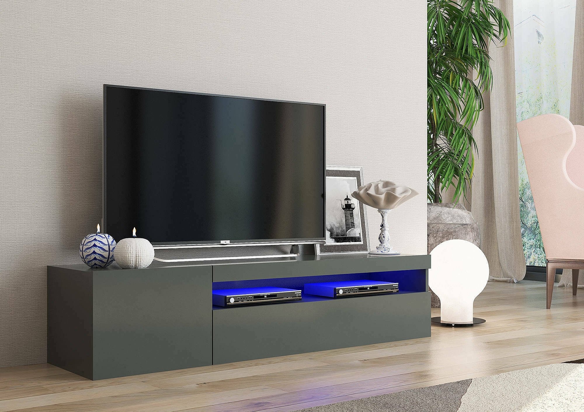 Meuble TV Turi, Buffet bas de salon, Base pour meuble TV, 100% Made in Italy, 150x40h37 cm, Anthracite Brillant, avec lumière LED