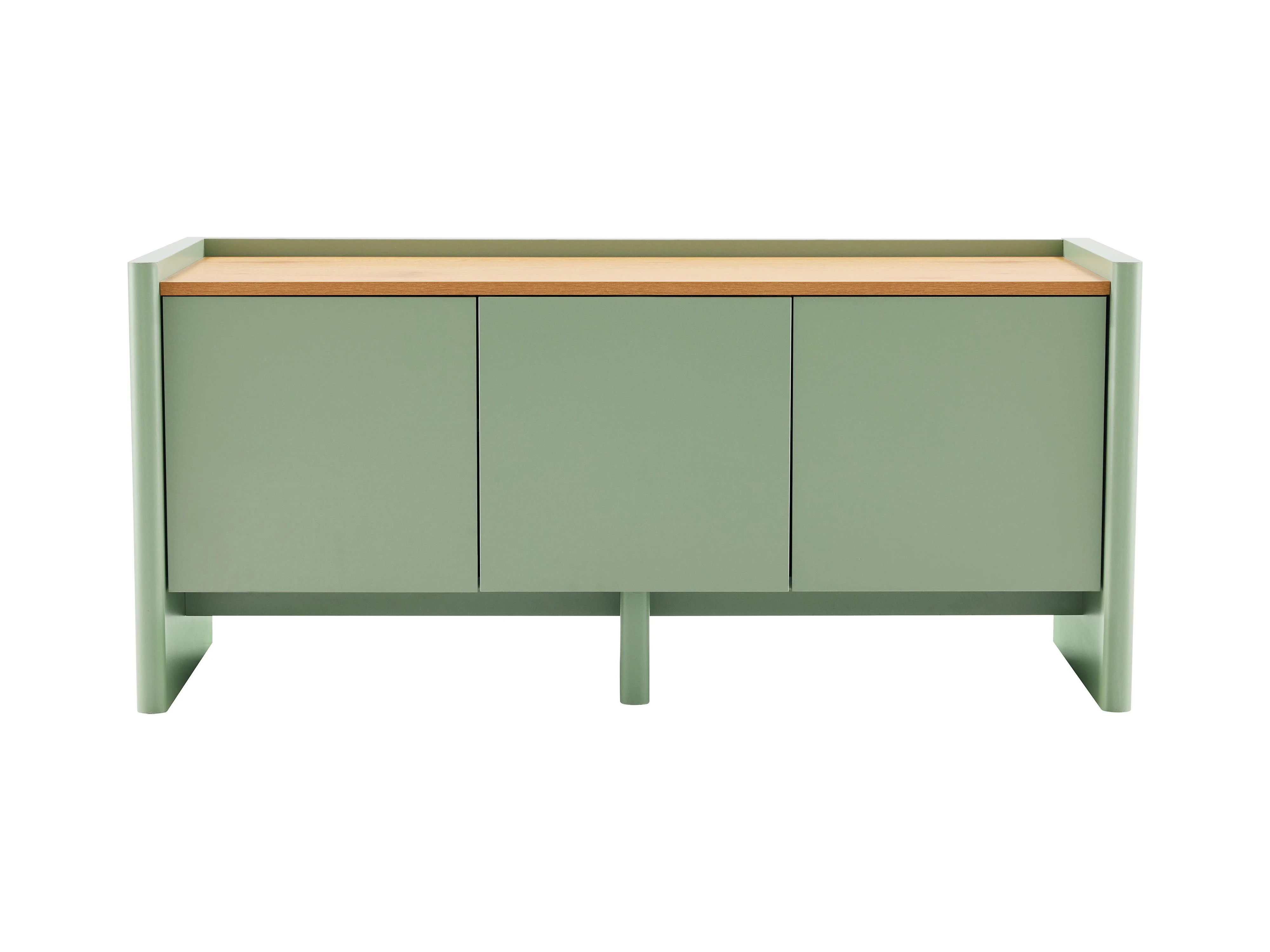 Meuble TV coloris vert sauge 180cm collection HAVANA. Meuble design avec 3 portes et 3 tiroirs.
