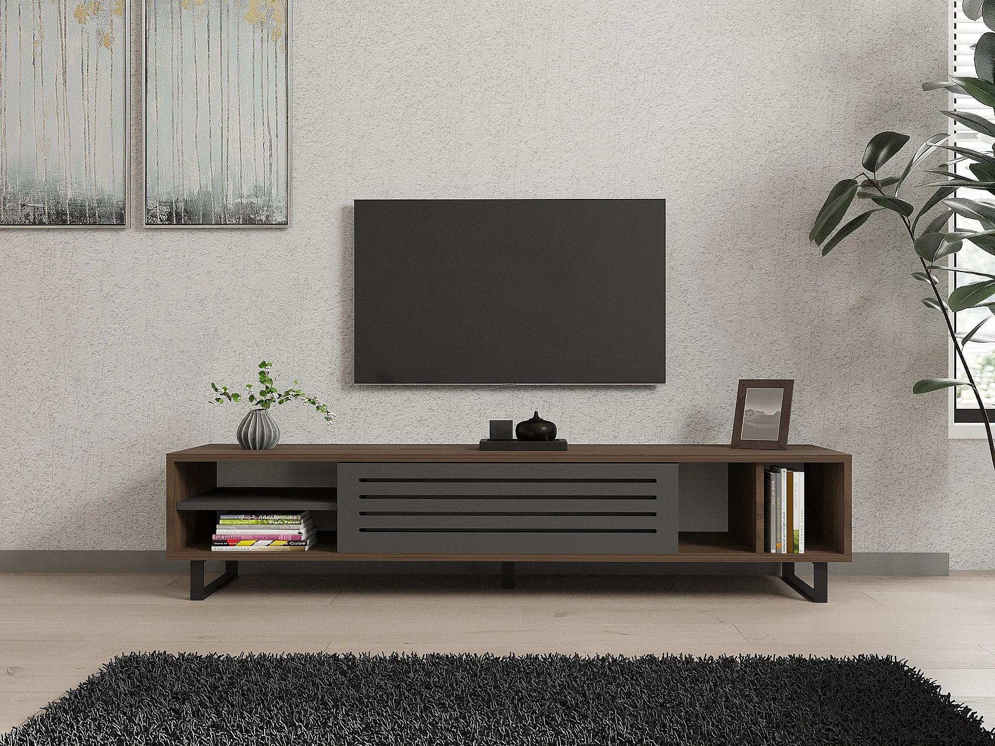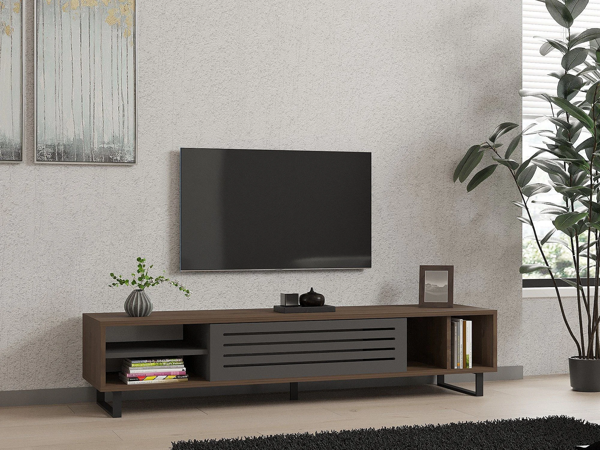 Meuble Tv Farfollo L180cm Bois foncé et Anthracite