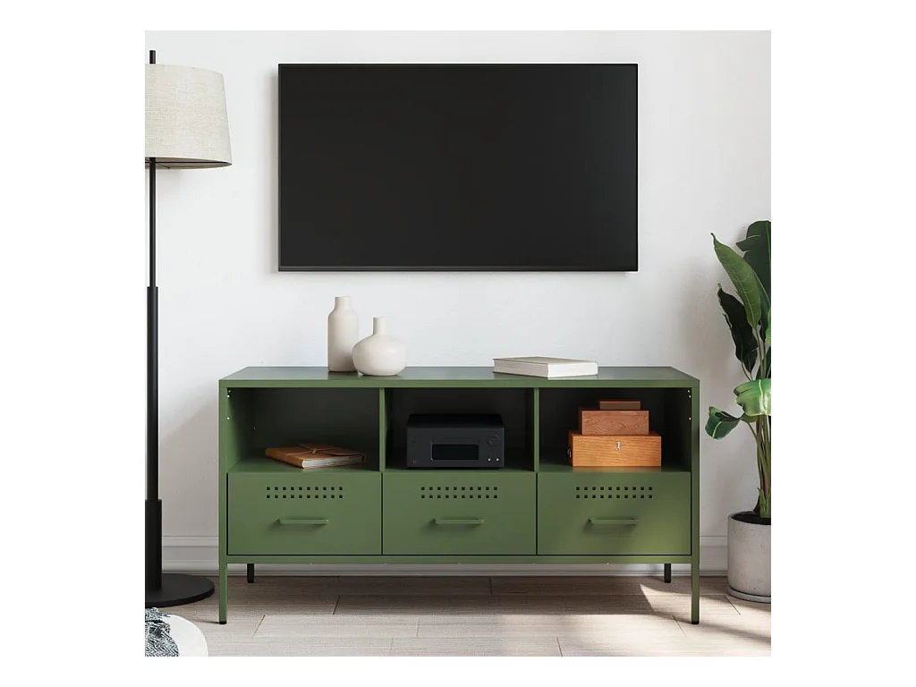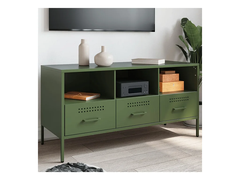 Meuble TV vert olive 100,5x39x60,5 cm acier FR447411