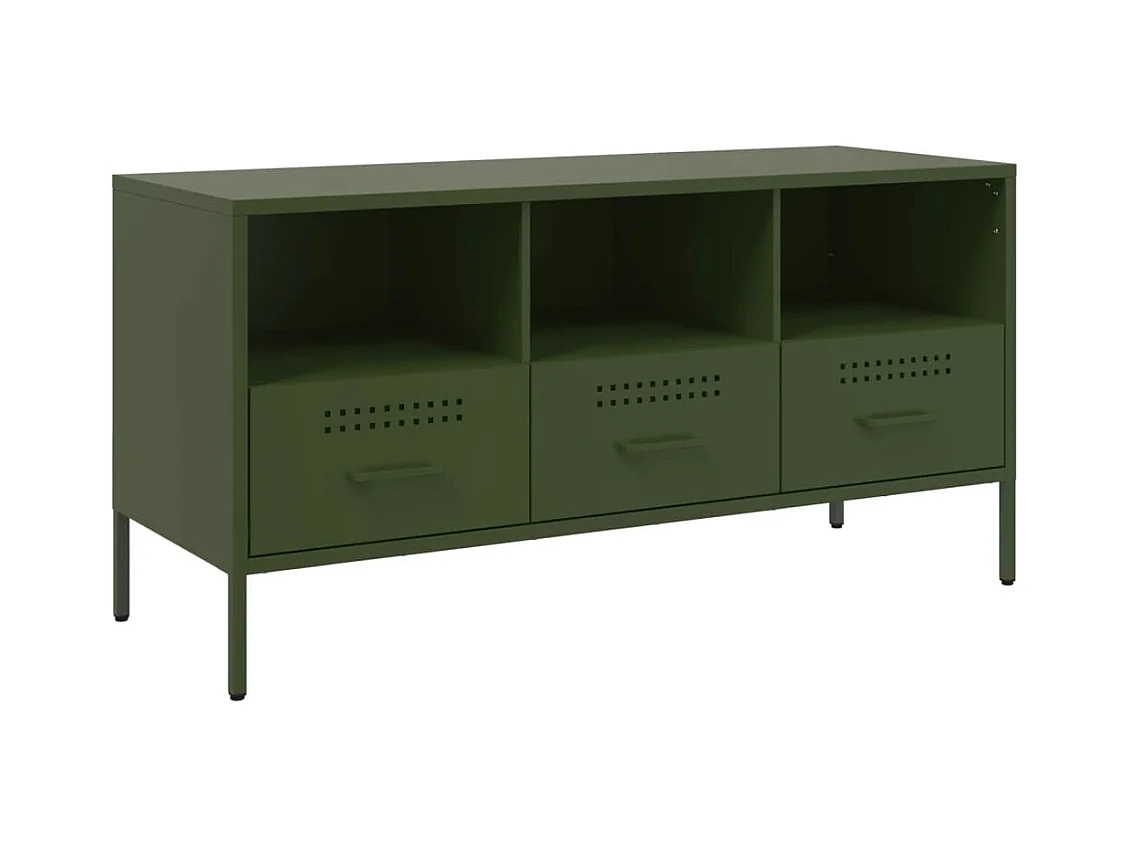 Meuble TV vert olive 100,5x39x50,5 cm acier laminé à froid FR549326