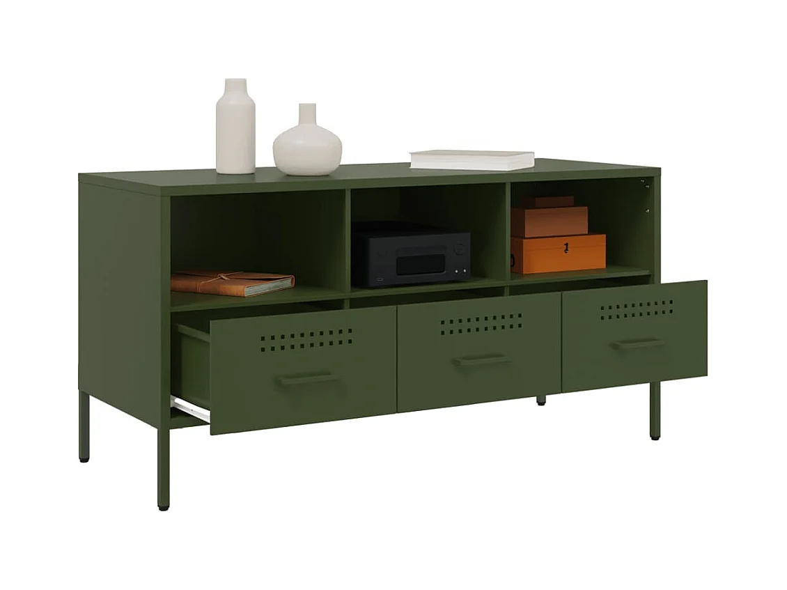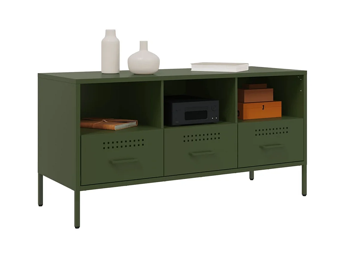 Meuble TV vert olive 100,5x39x60,5 cm acier