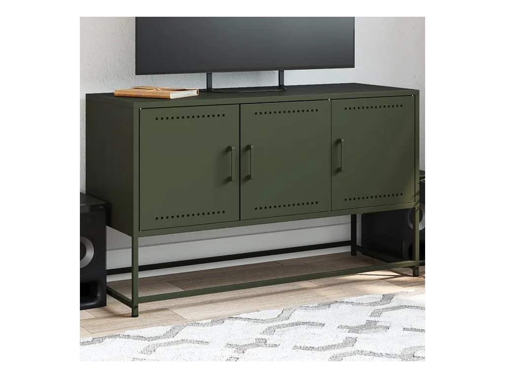 Meuble TV vert olive 100,5x39x60,5 cm acier FR447411