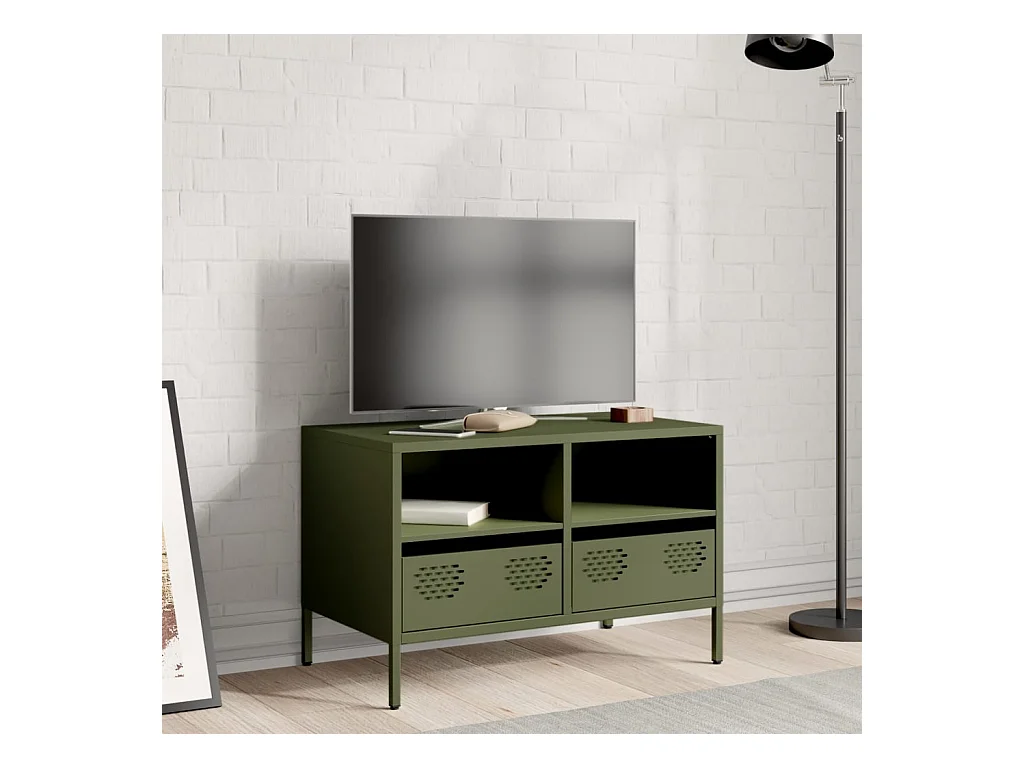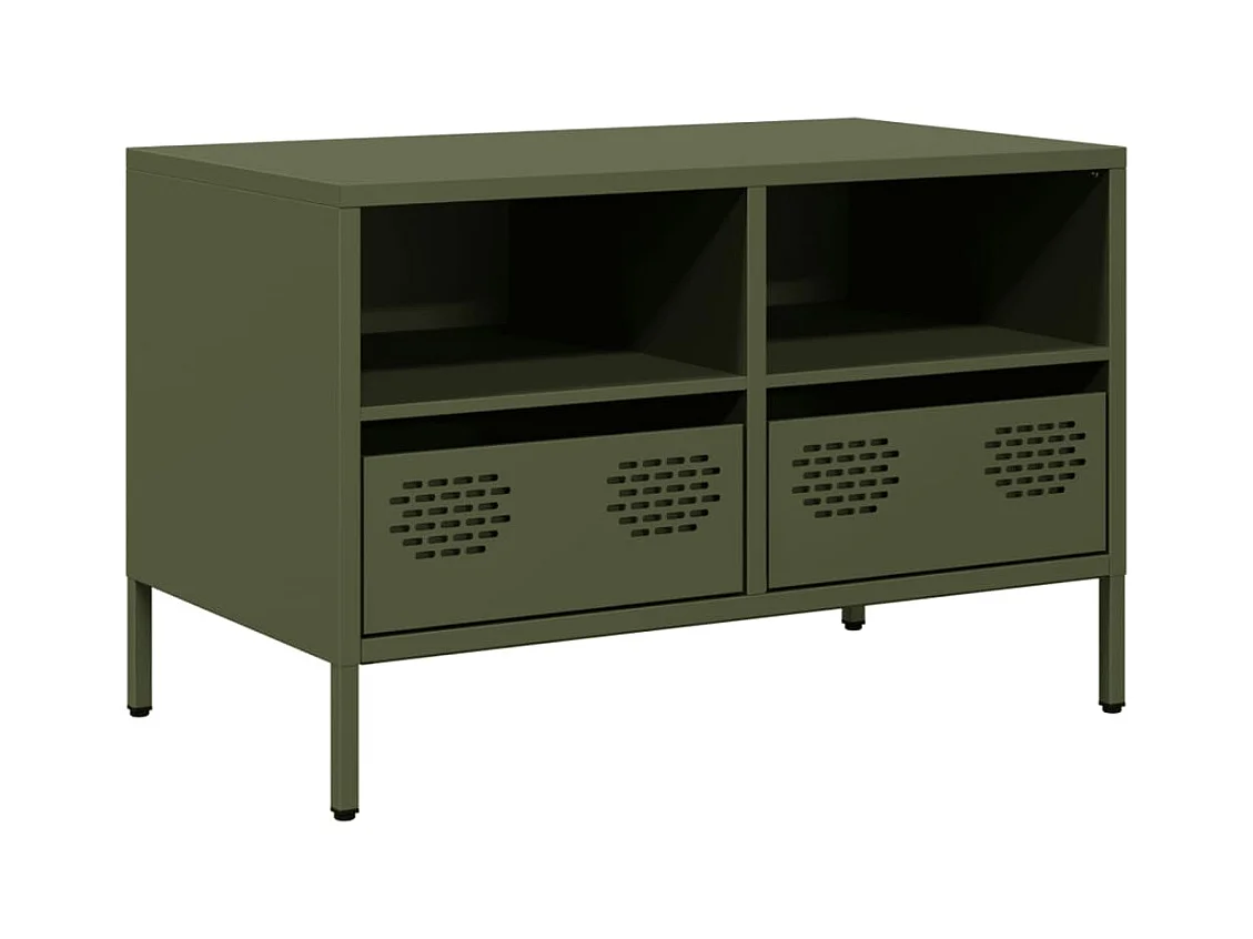 Meuble TV vert olive 68x39x43,5 cm acier laminé à froid