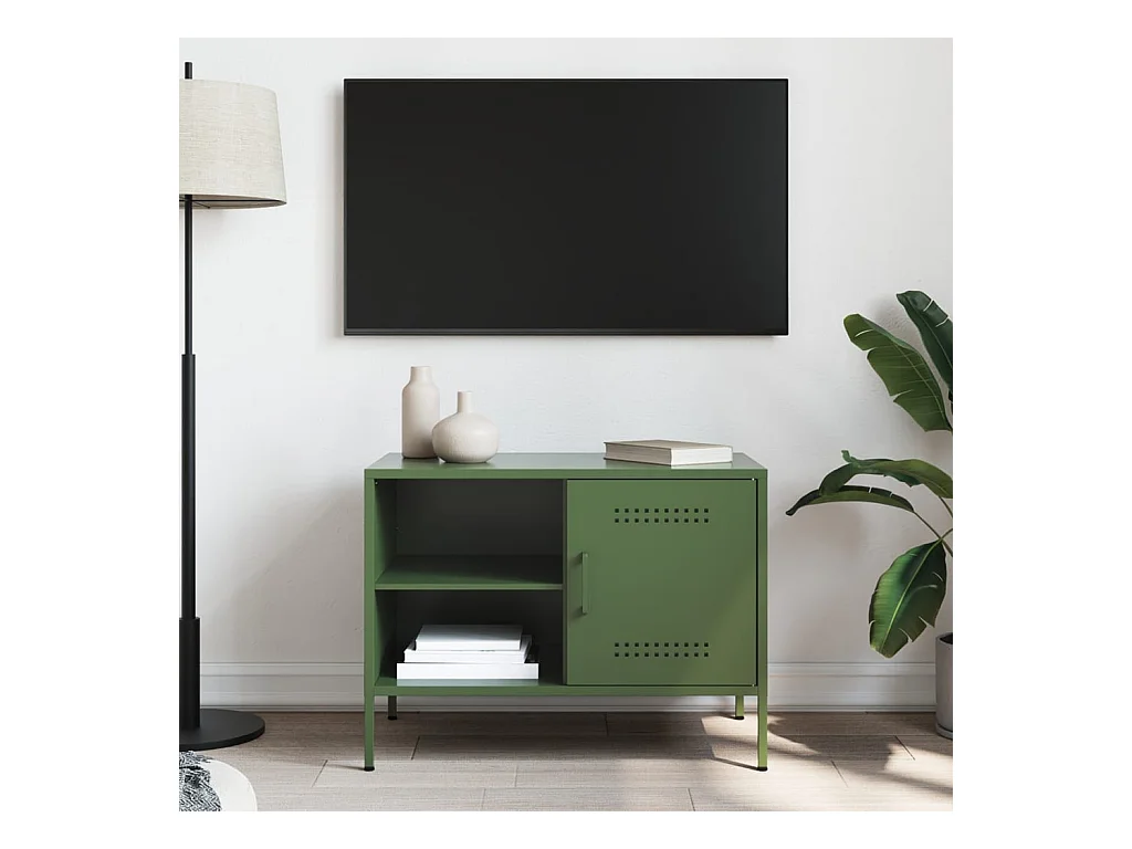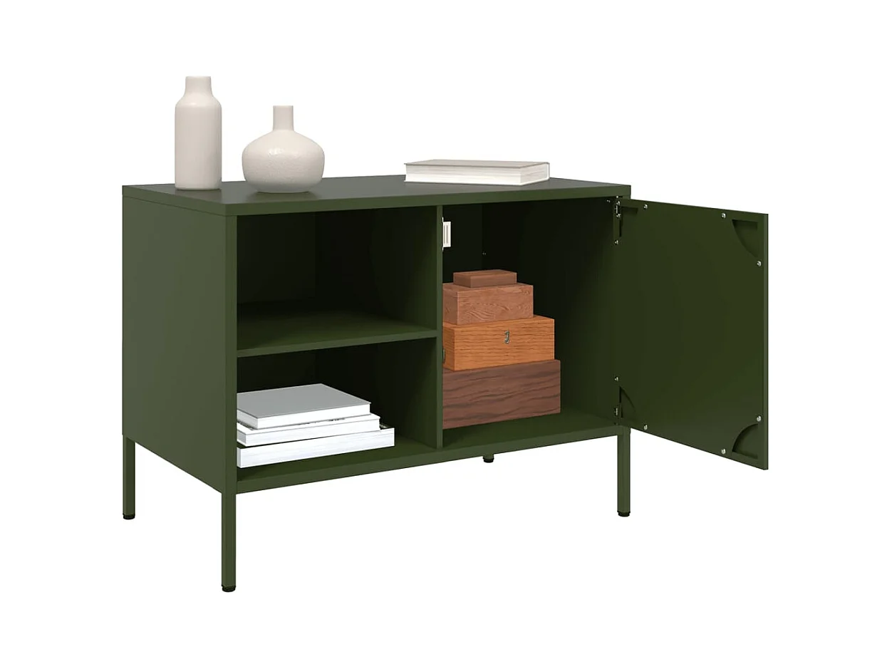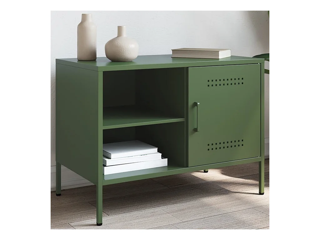 Meuble TV vert olive 68x39x50,5 cm acier laminé à froid FR944582