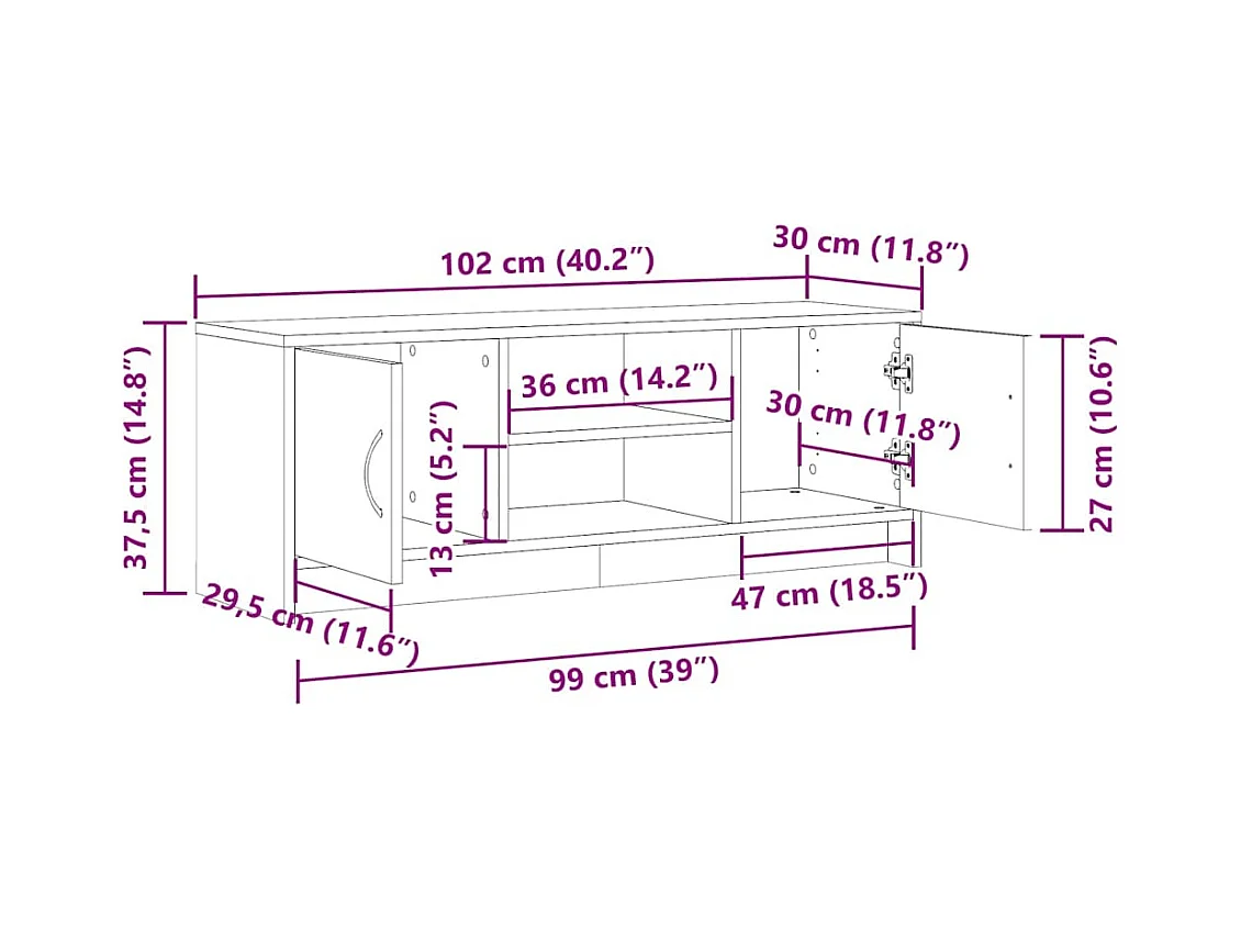 Meuble TV Chêne sonoma 102x37,5x52,5 cm Bois d'ingénierie