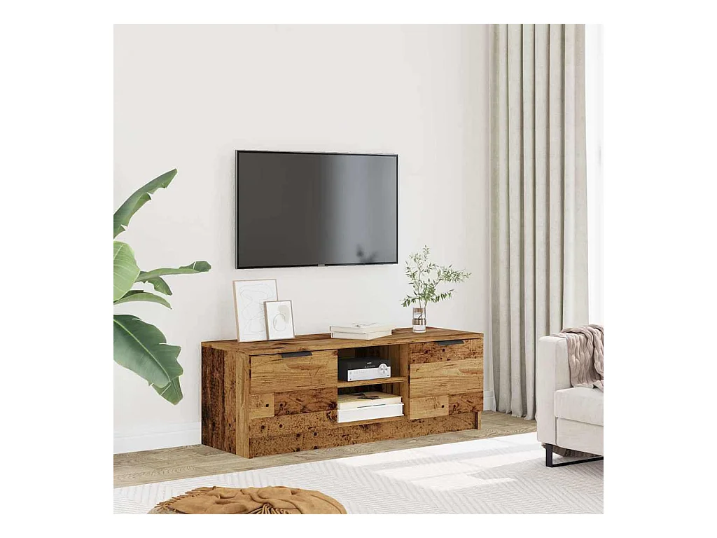 Meuble TV vieux bois 102x35x36,5 cm bois d'ingénierie