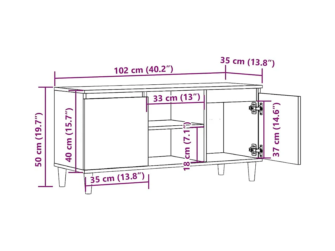 Meuble TV avec pieds en bois massif Chêne sonoma 103,5x35x50 cm