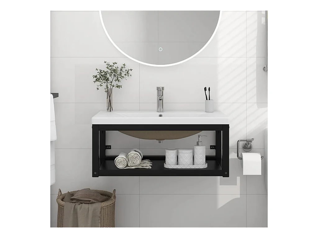 Cadre de lavabo pour salle de bain Noir 79x38x83 cm Fer FR694012