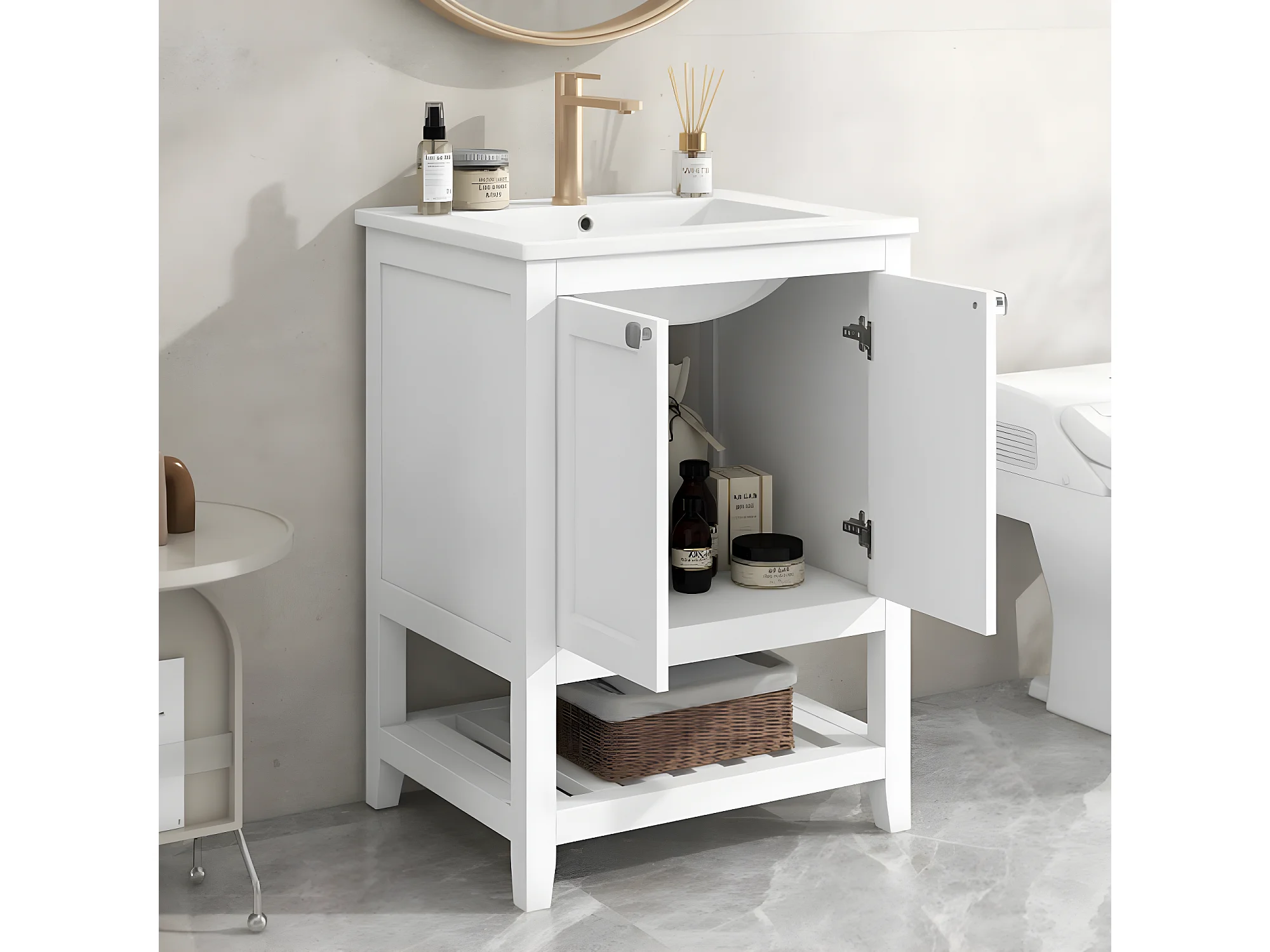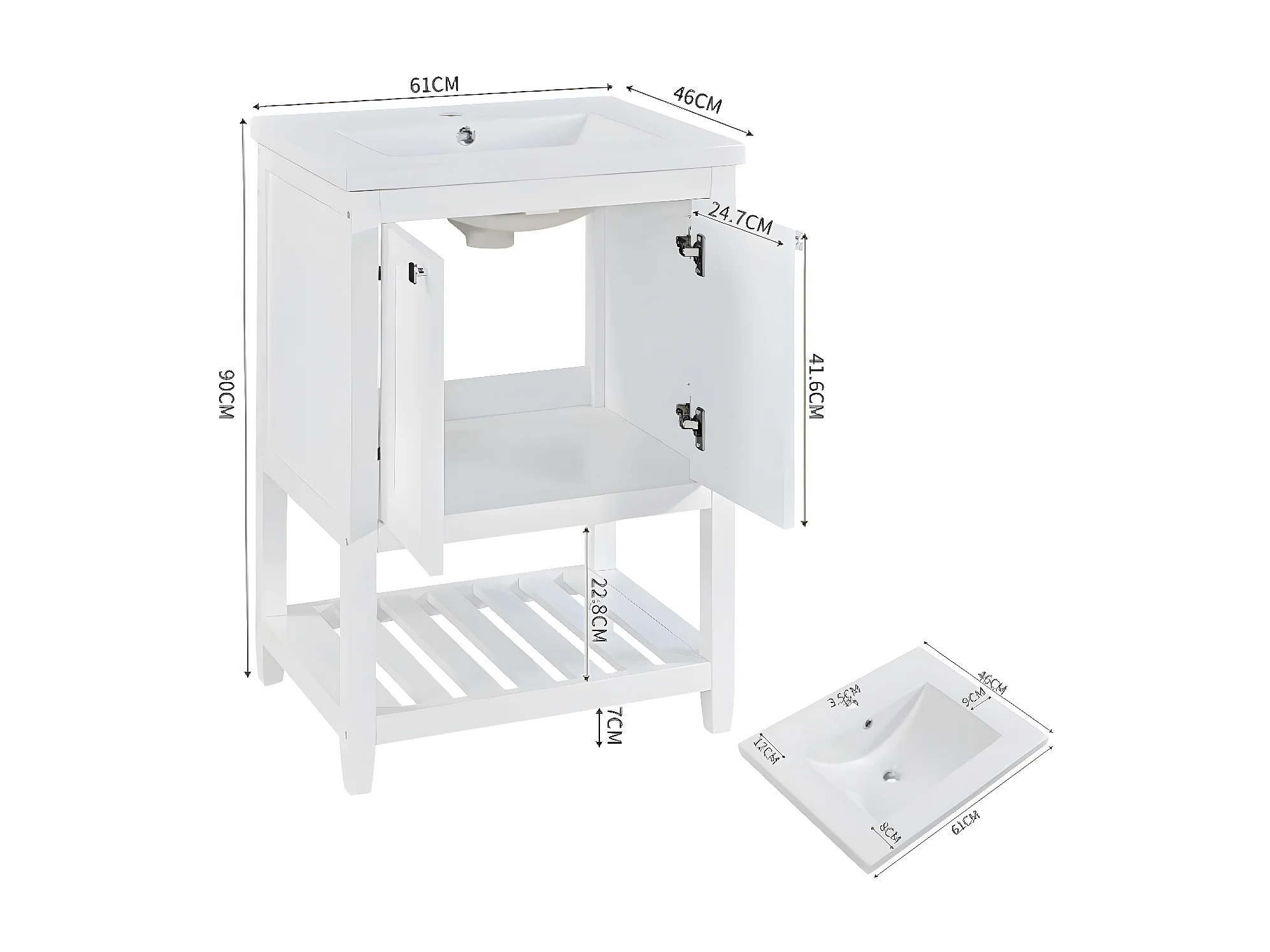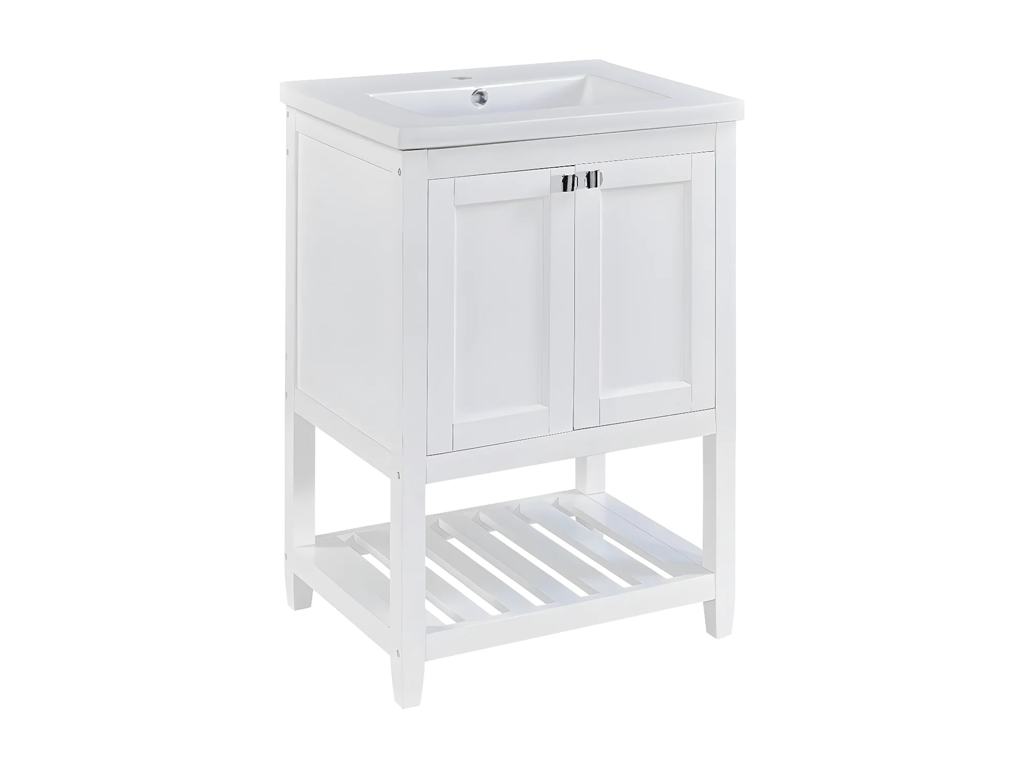 Meuble vasque avec lavabo en céramique 60cm - Blanc
