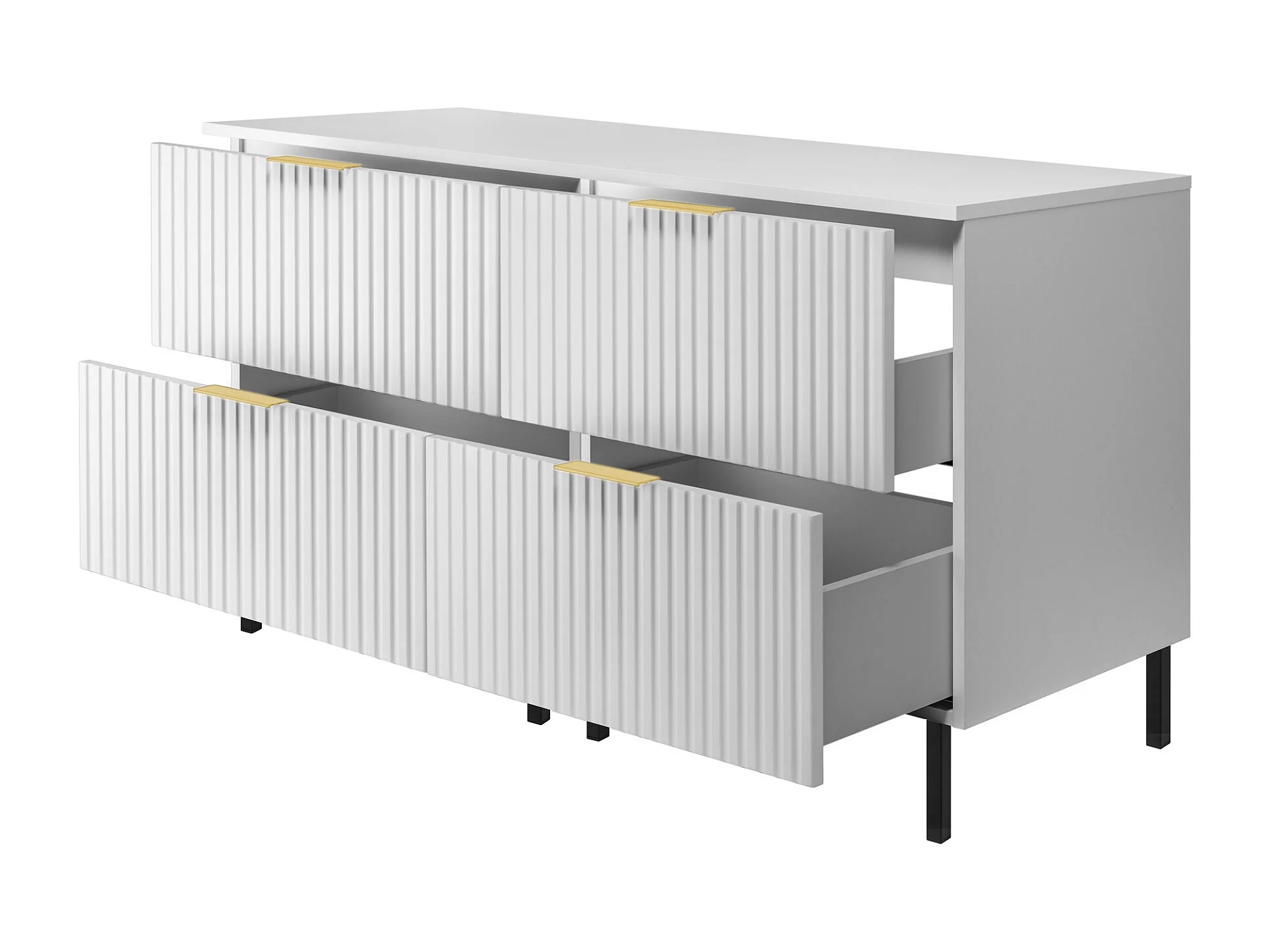 Meuble vasque, Blanc, 120 (2 x 60) x 77 x 46 cm, poignée dorée, pieds noirs + Plan de travail
