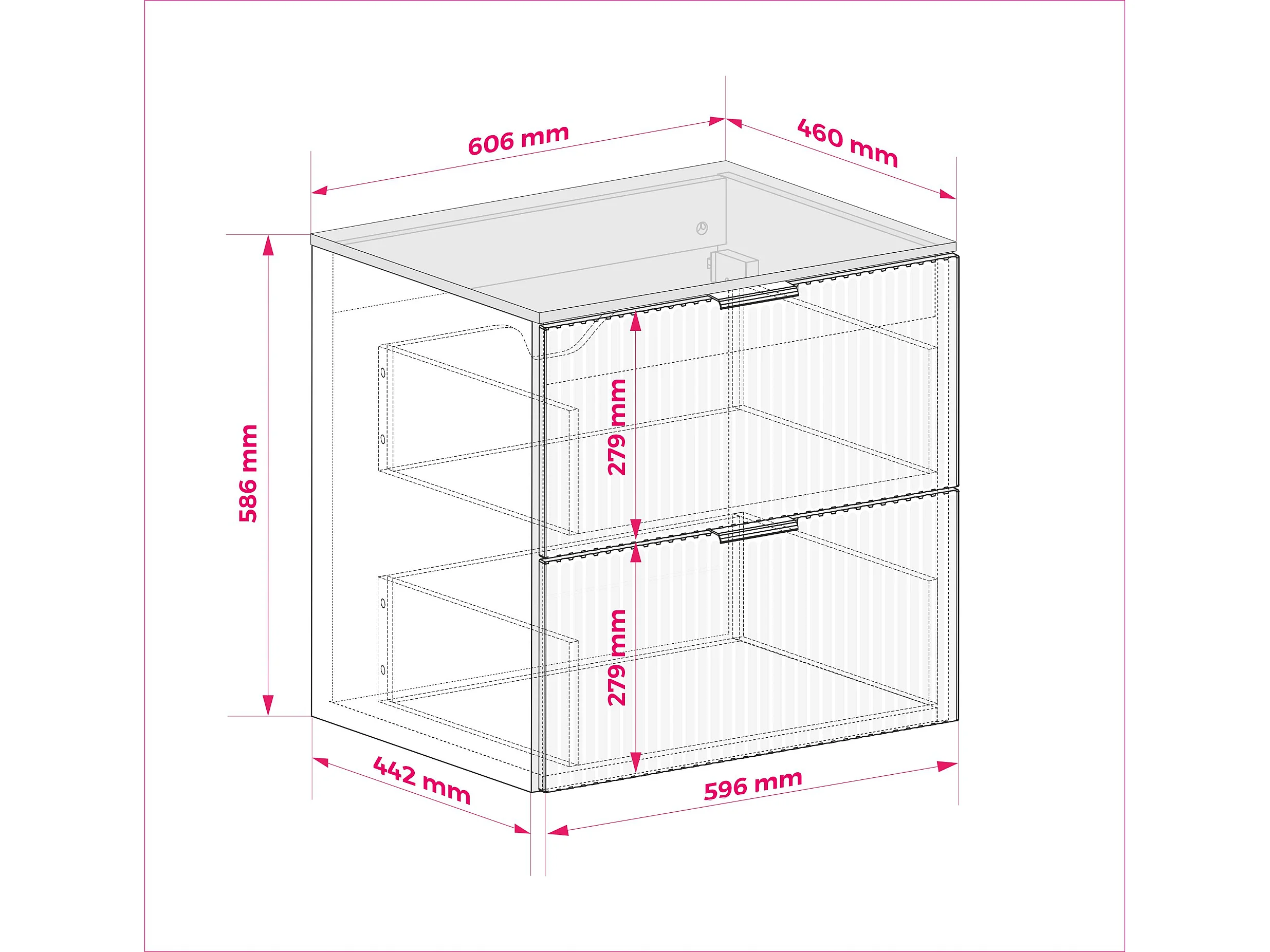 Meuble vasque, Cachemire, 60 x 57 x 46 cm, poignée argentée + Plan de travail