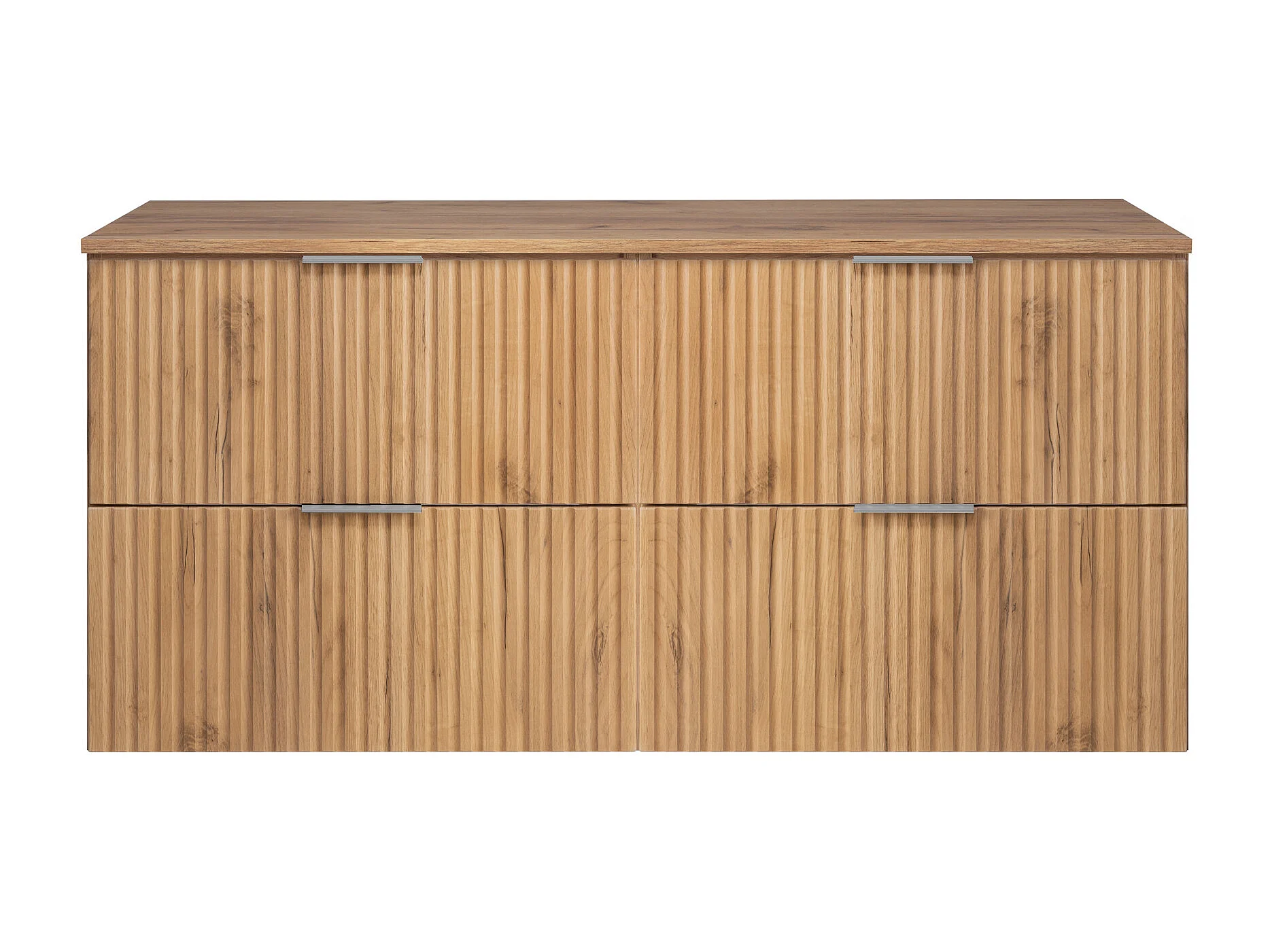 Meuble vasque, Chêne Craft, 120 (2 x 60) x 57 x 46 cm, poignée argentée + Plan de travail