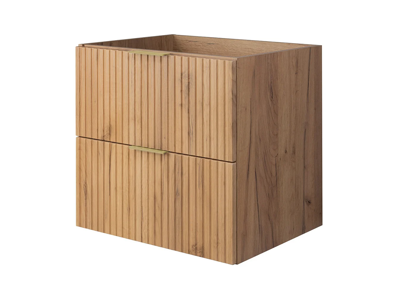 Meuble vasque, Chêne Craft, 60 x 57 x 46 cm, poignée dorée, sans plateau