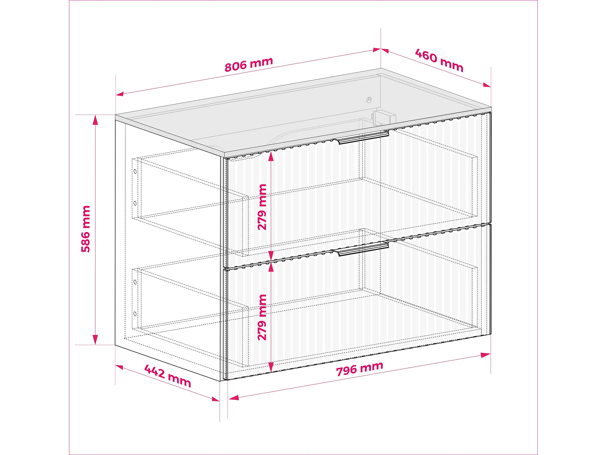 Meuble vasque, Chêne Craft, 80 x 57 x 46 cm, poignée argentée + Plan de travail