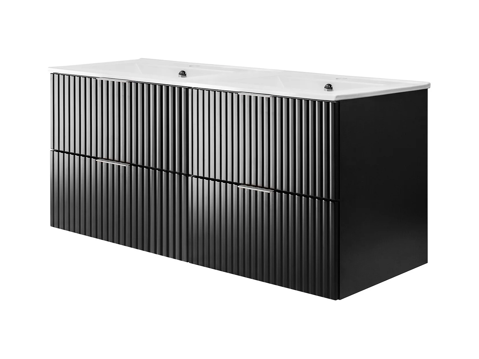 Meuble vasque, Noir, 120 (2 x 60) x 57 x 46 cm, poignée argentée, sans plateau