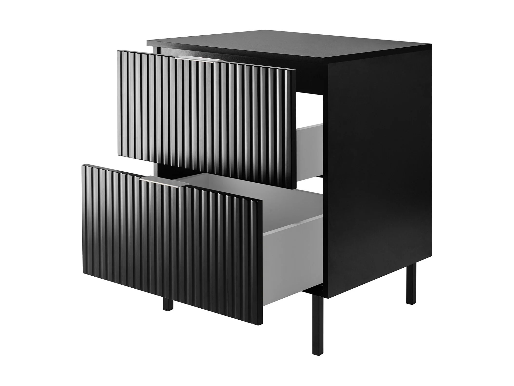 Meuble vasque, noir, 60 x 77 x 46 cm, poignée argentée, pieds noirs + plan de travail
