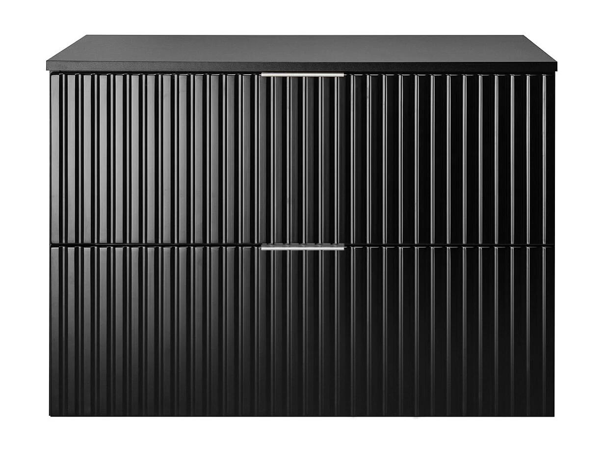 Meuble vasque, Noir, 80 x 57 x 46 cm, poignée argentée + Plan de travail