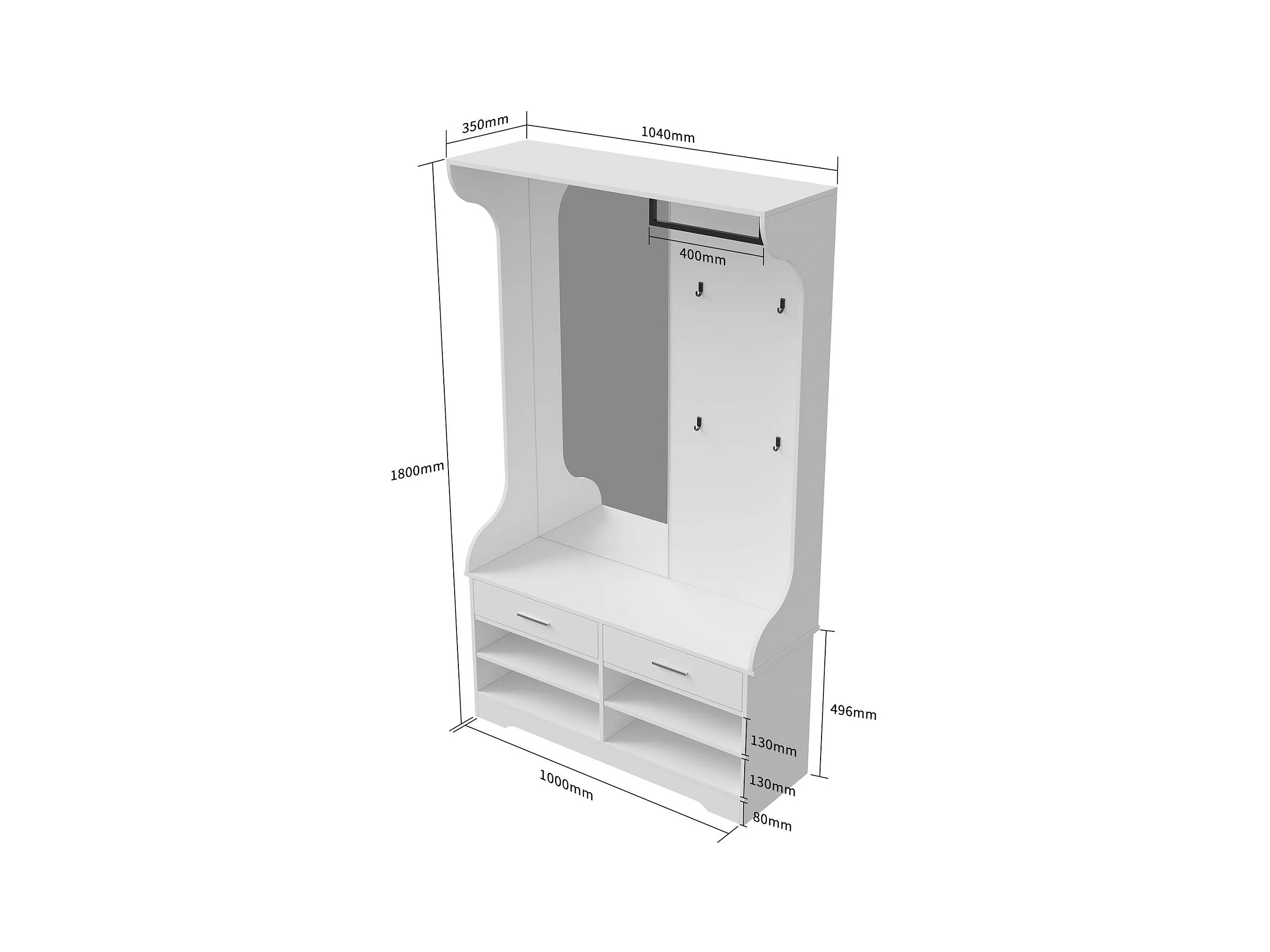 Meuble Vestiaire d'Entrée avec Miroir, Crochets et Rangements pour Chaussures - Design Moderne