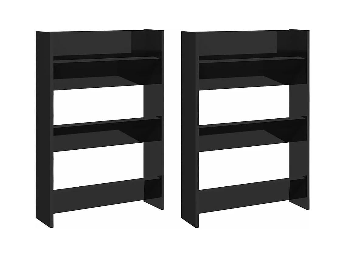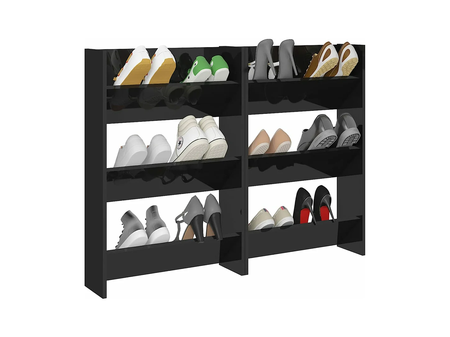Meubles à chaussures murales 2 pcs noir brillant 60x18x90cm FR79676