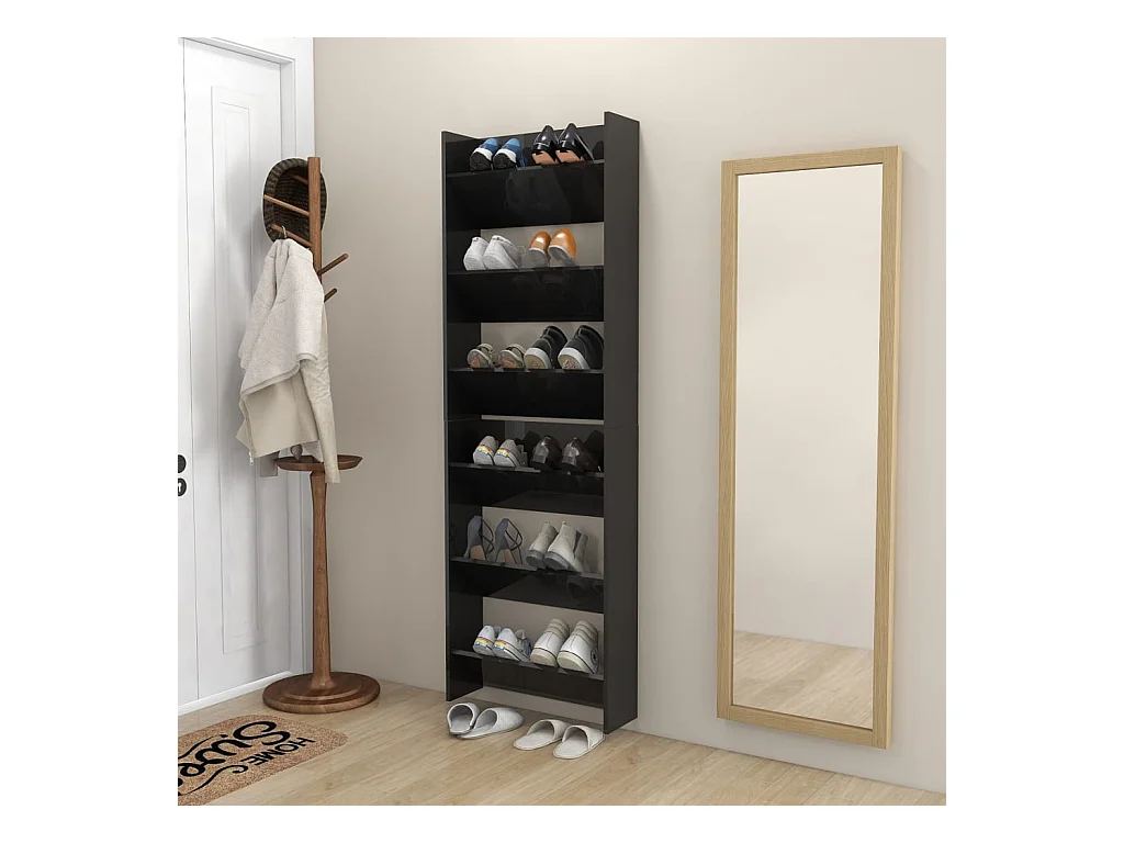 Meuble à chaussures murale noir brillant bois d'ingénierie FR56920