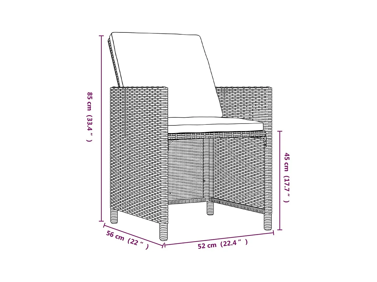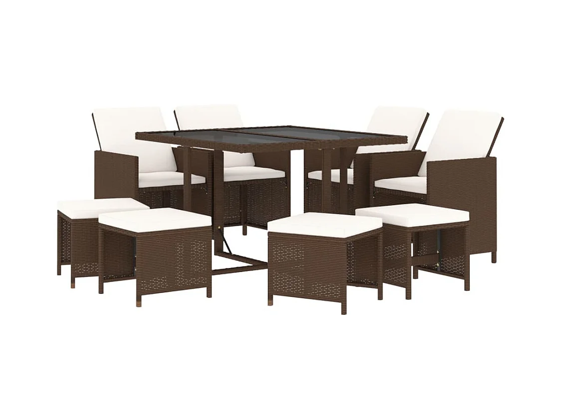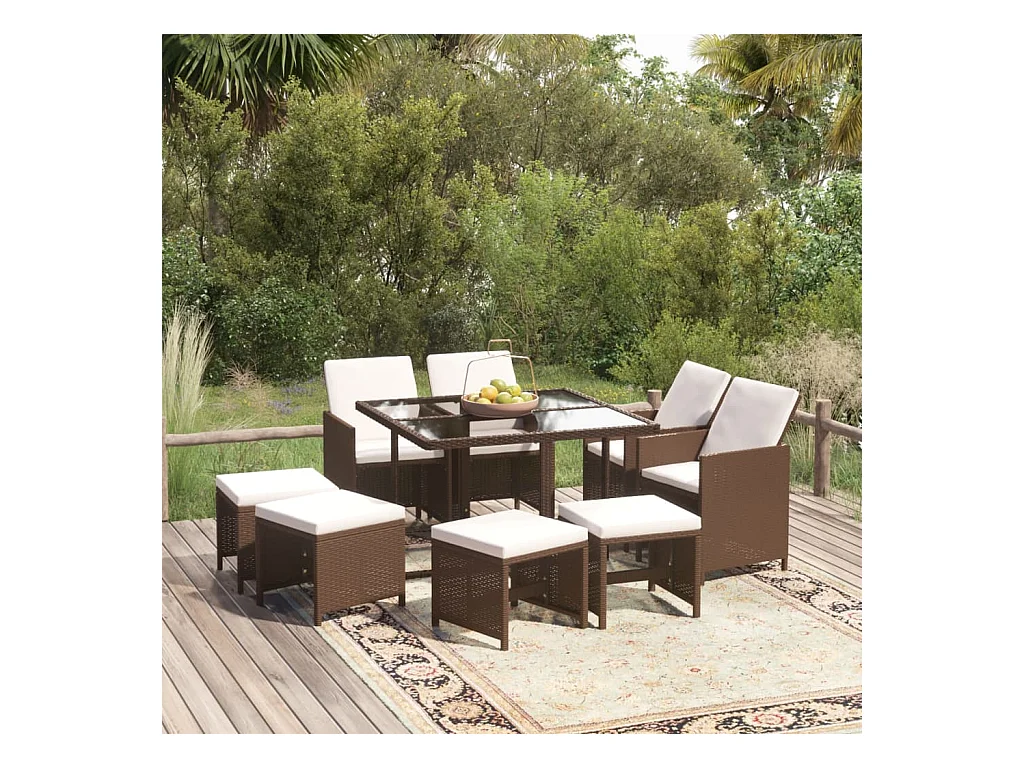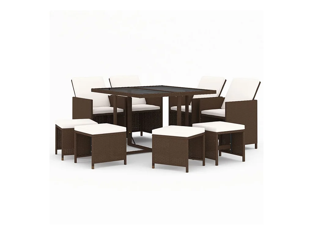 Ensemble à manger de jardin et coussins 9 pièces marron poly rotin