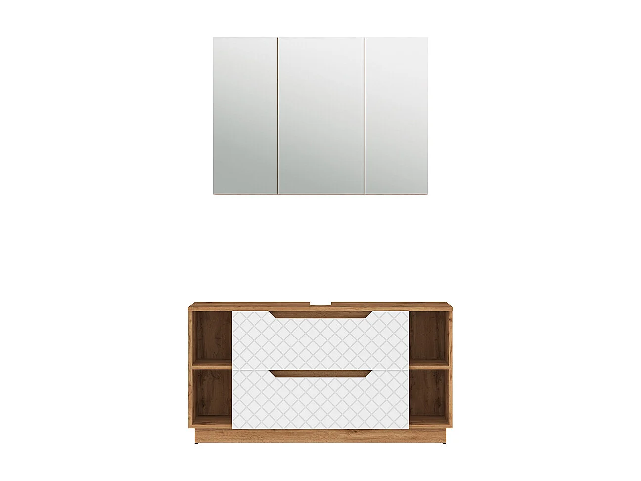 Meubles bain chêne/blanc avec structure en carreaux 119.2x35x62.5 lotta